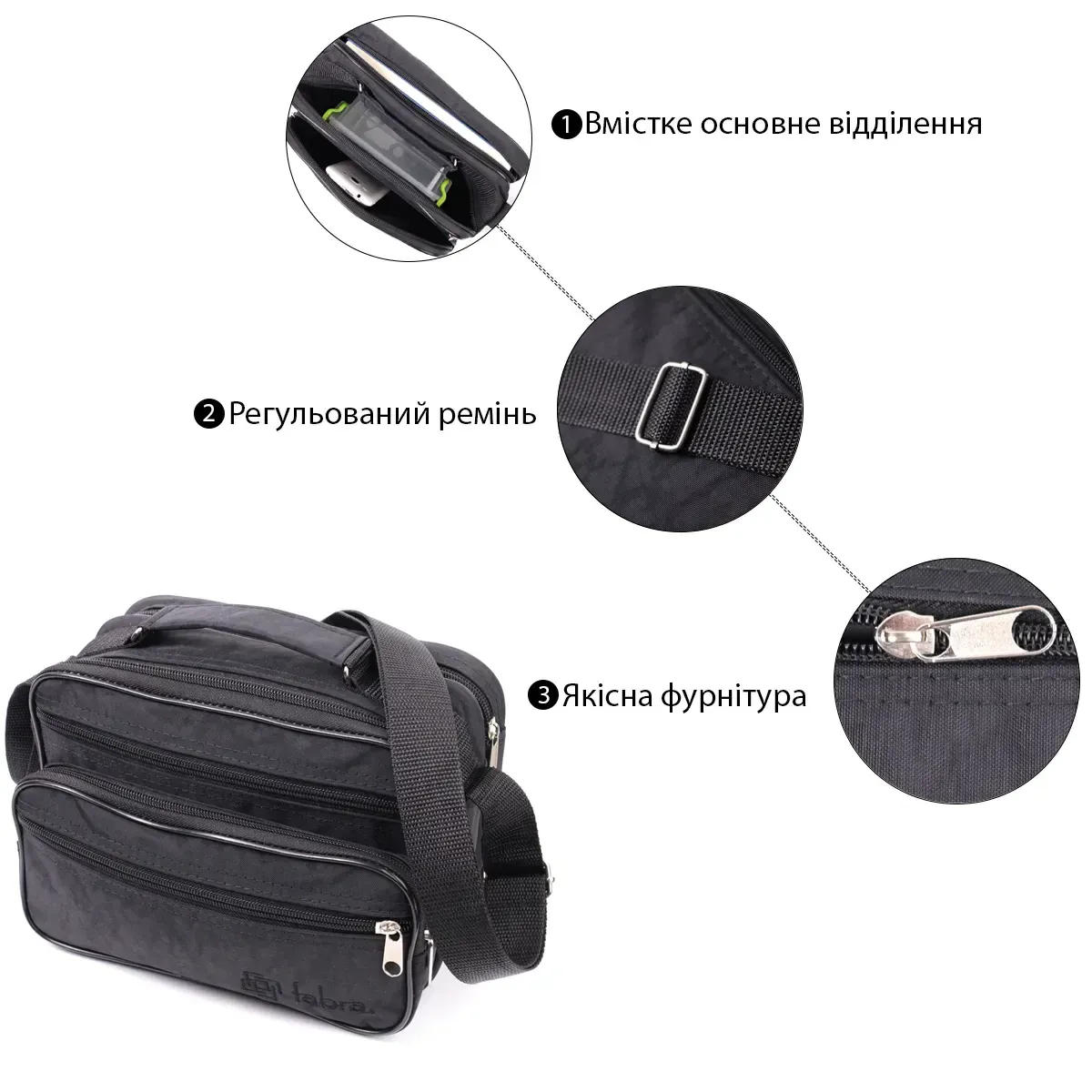Зручна чоловіча сумка на плече з якісного поліестеру FABRA 22577 Чорний