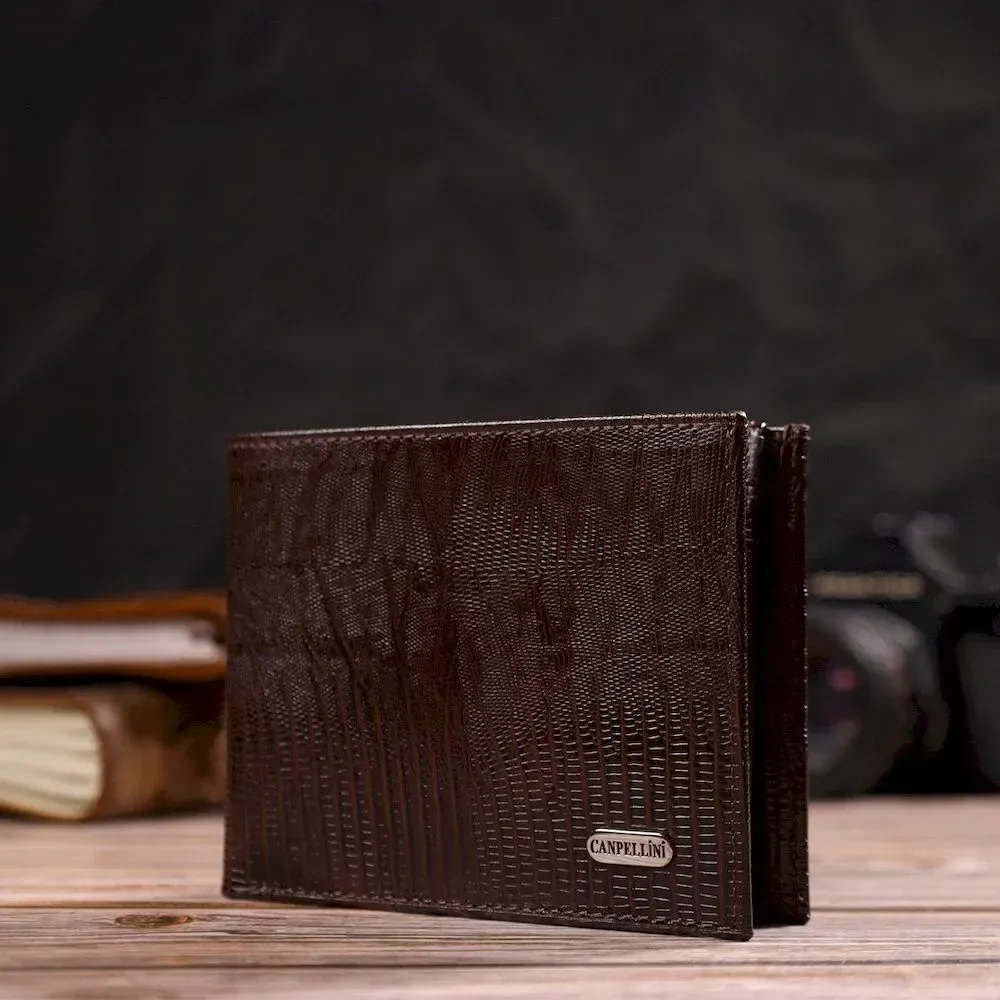 Зручне чоловіче портмоне із натуральної фактурної шкіри CANPELLINI 21869 Коричневий