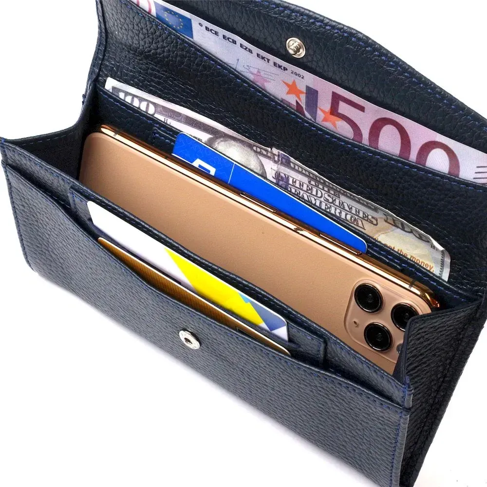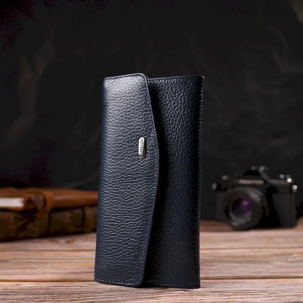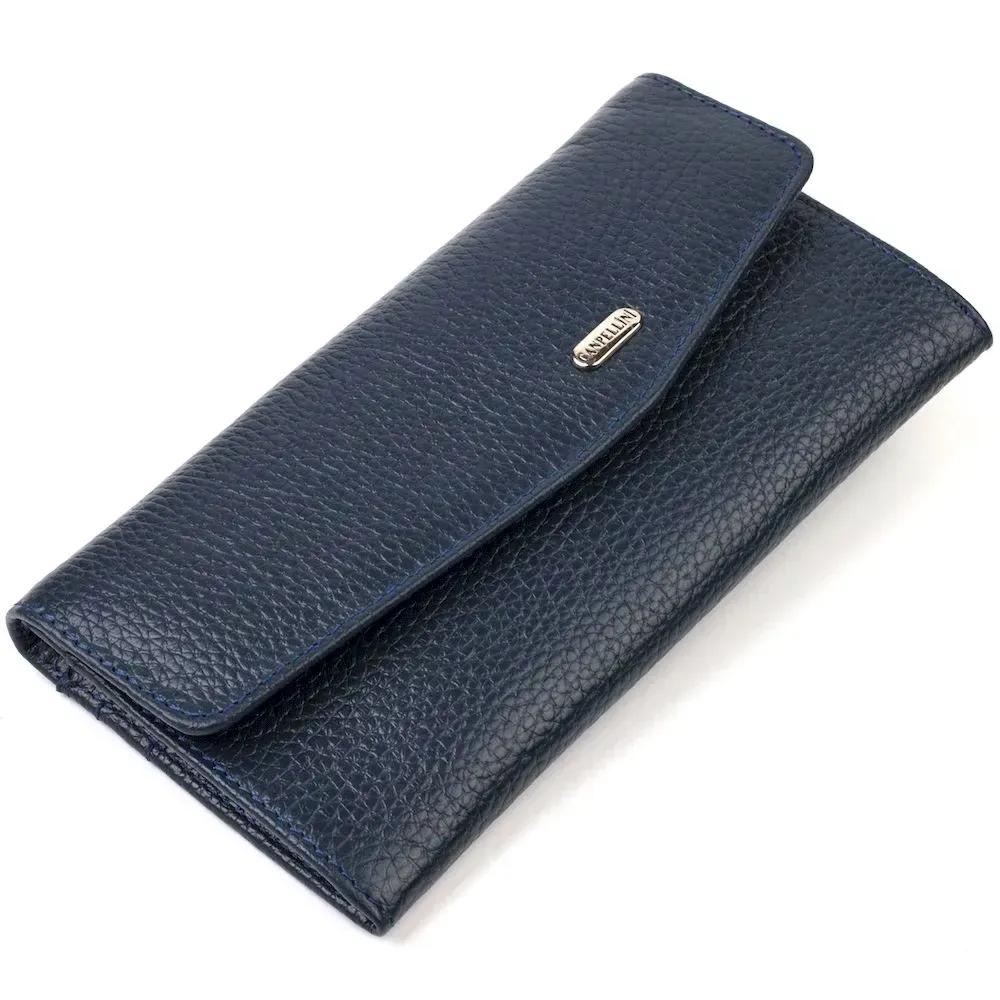 Зручне жіноче портмоне з натуральної шкіри флотар CANPELLINI 21702 Синє