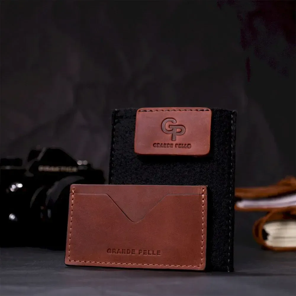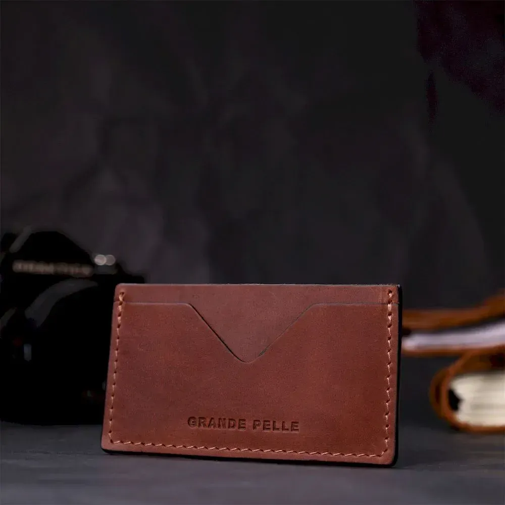 Зручний кард-кейс із натуральної шкіри GRANDE PELLE 11666 Коричневий