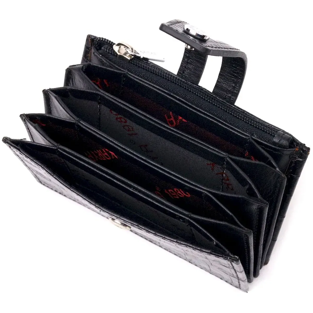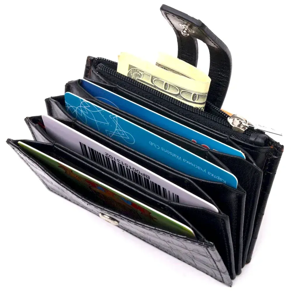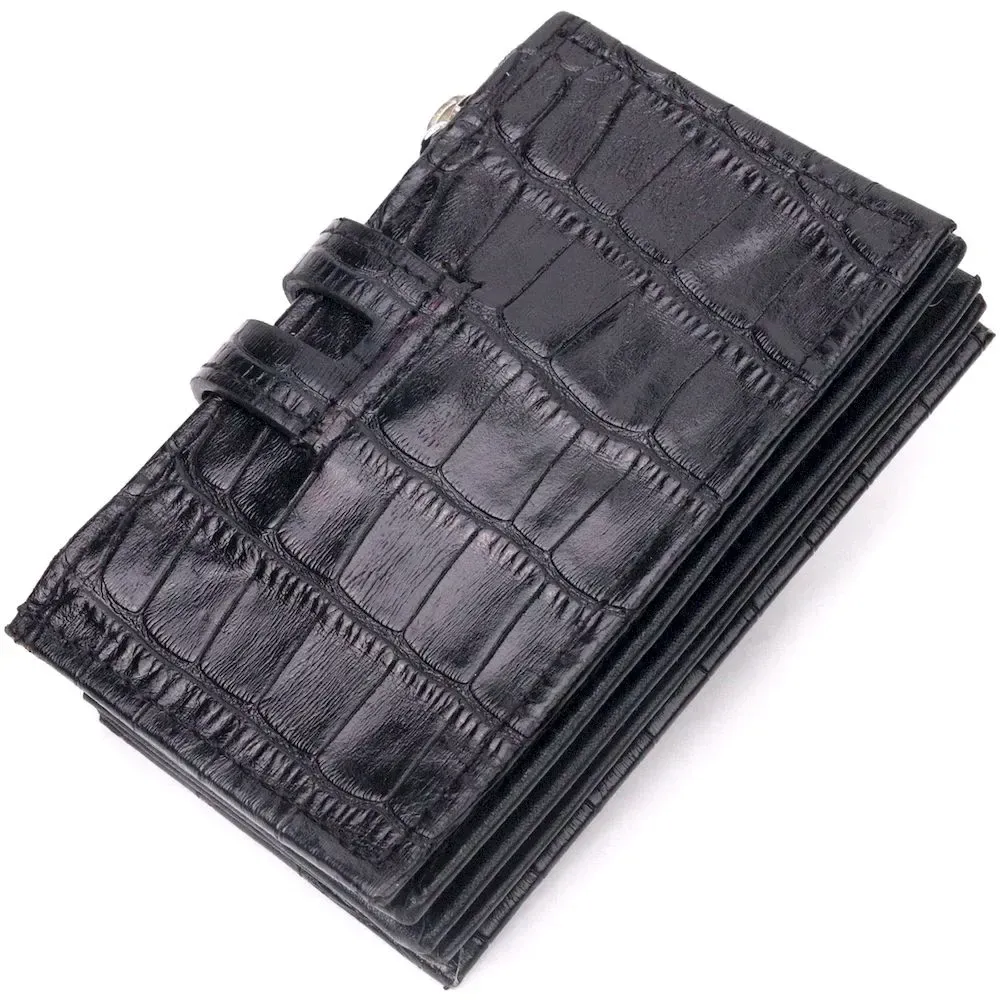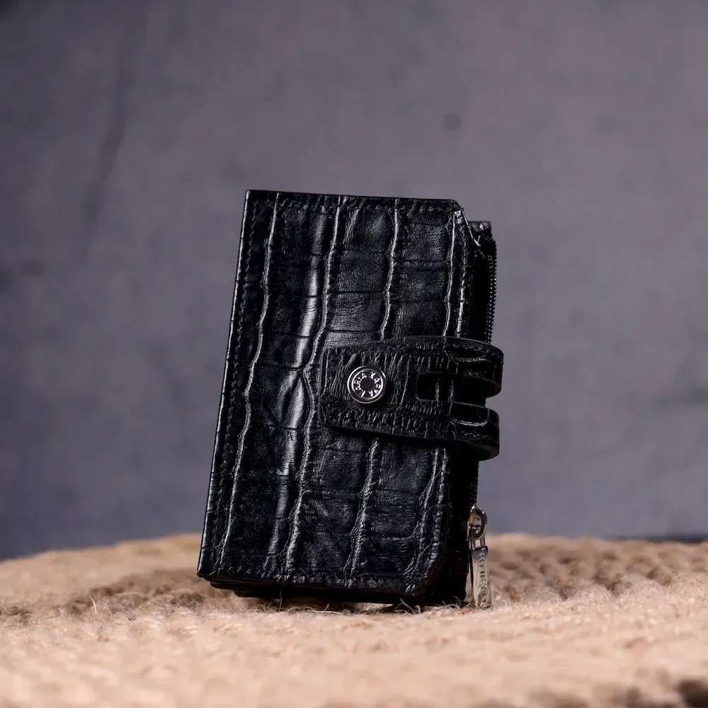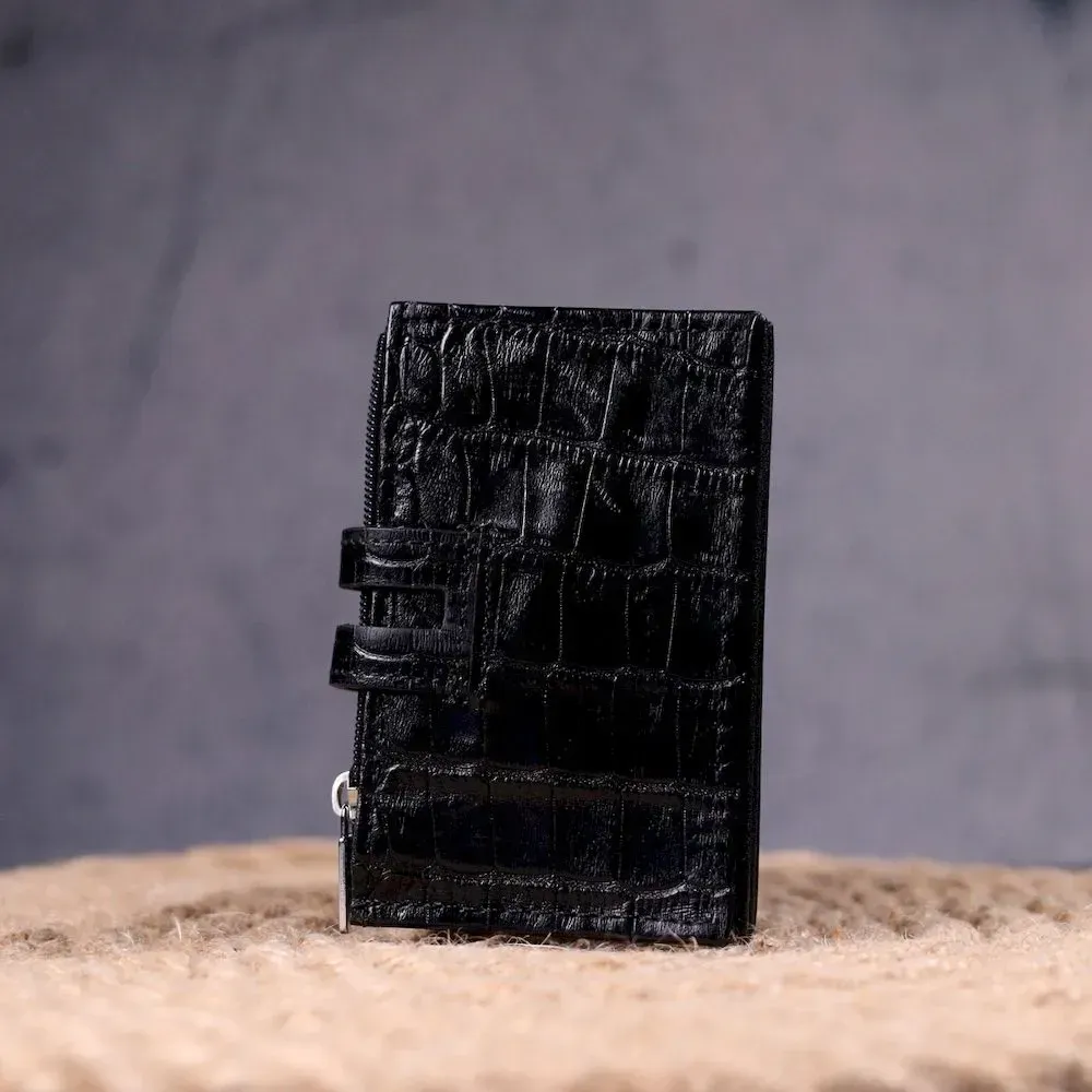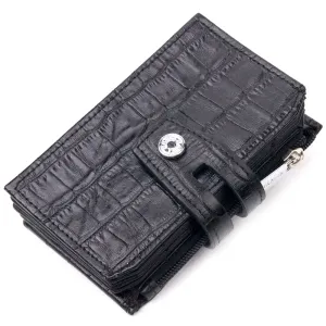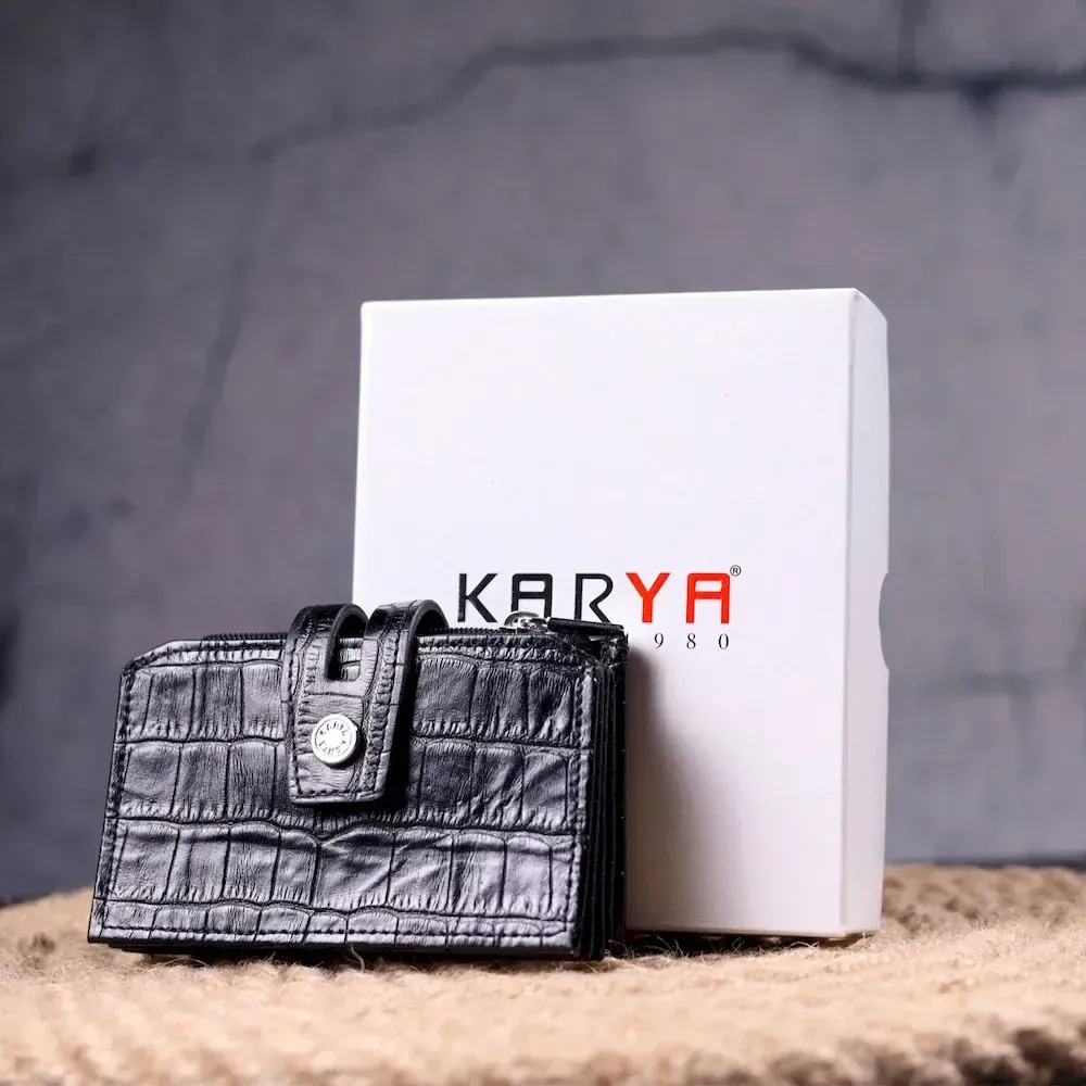 Зручний картхолдер із натуральної шкіри з тисненням під крокодила KARYA 21331 Чорний