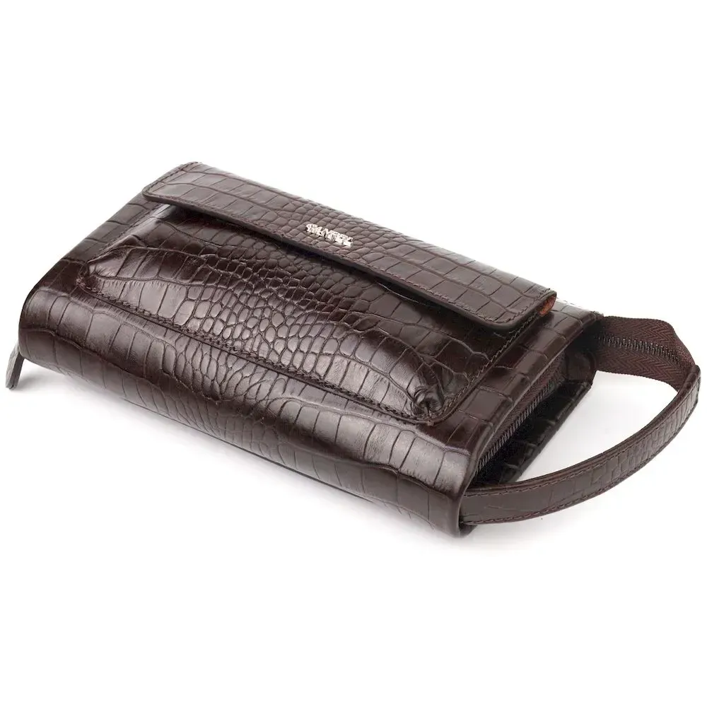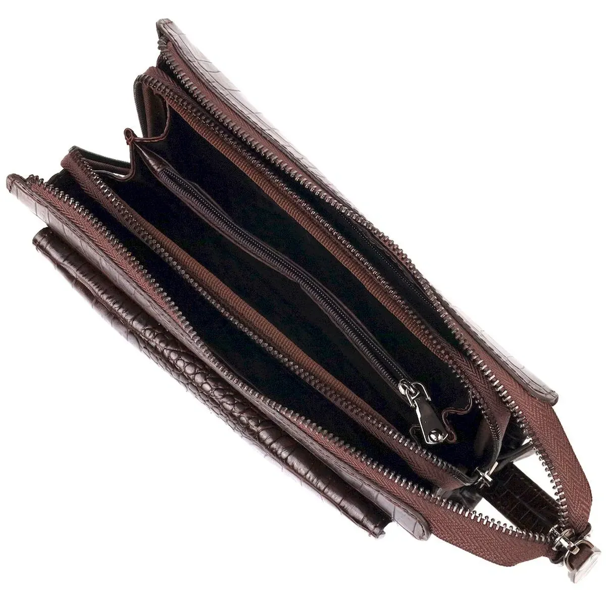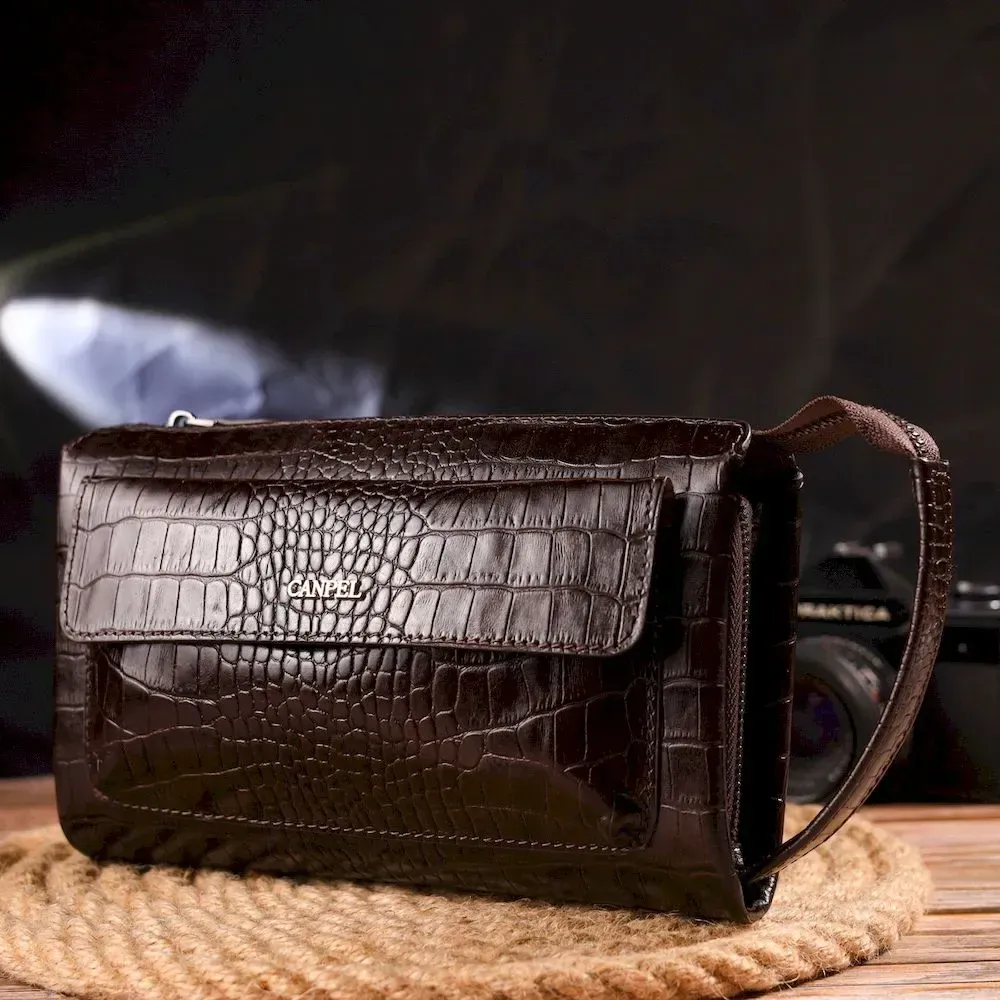 Зручний клатч для чоловіків із натуральної фактурної шкіри з тисненням під крокодила CANPELLINI 21561 Коричневий