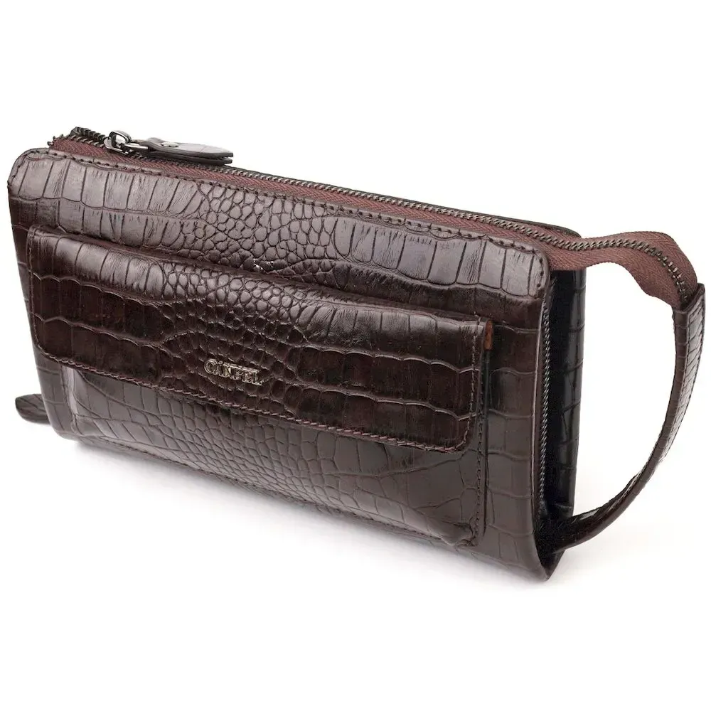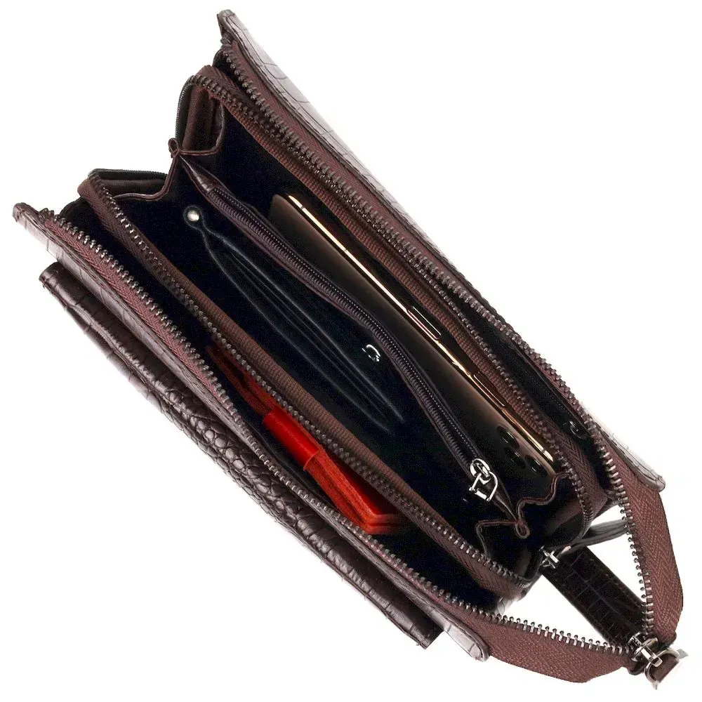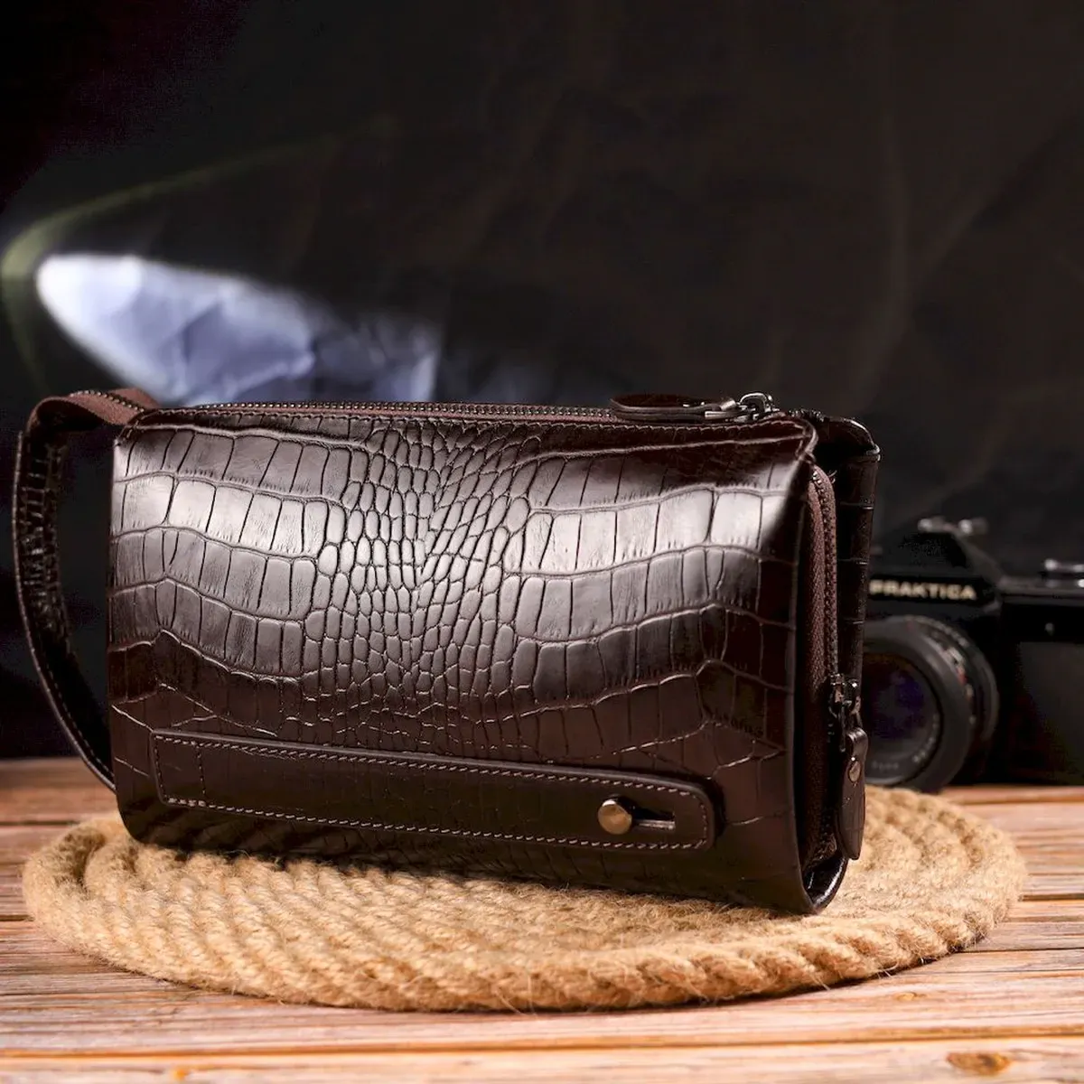 Зручний клатч для чоловіків із натуральної фактурної шкіри з тисненням під крокодила CANPELLINI 21561 Коричневий