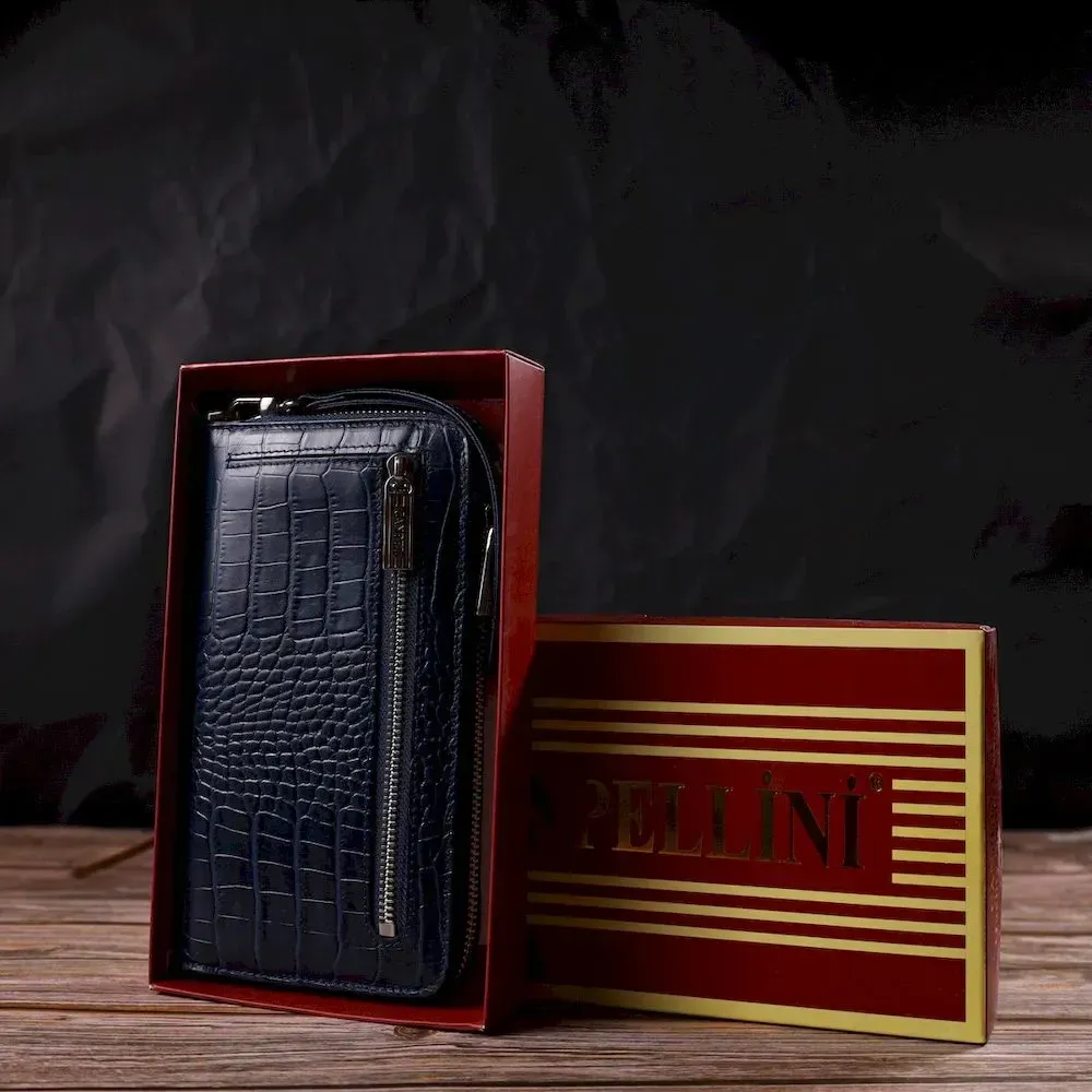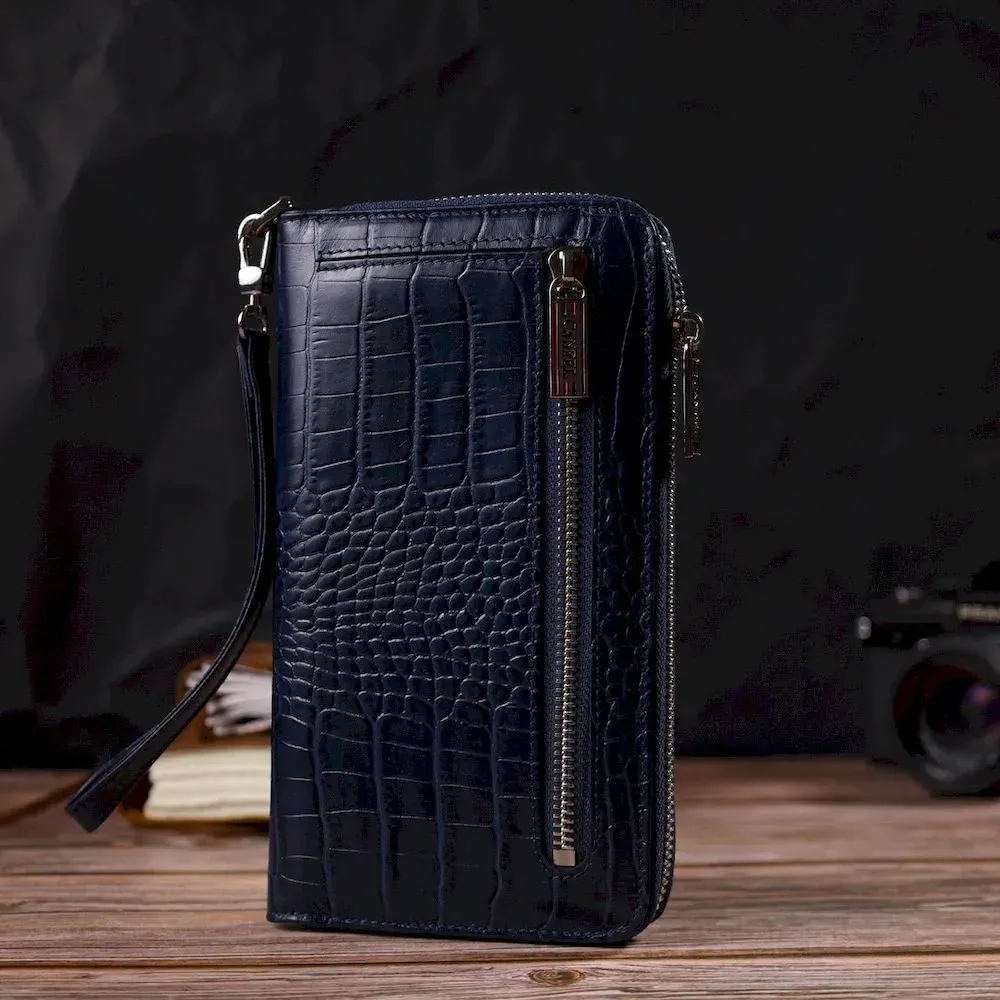Зручний клатч для жінок із натуральної шкіри із тисненням під крокодила CANPELLINI 21922 Синій