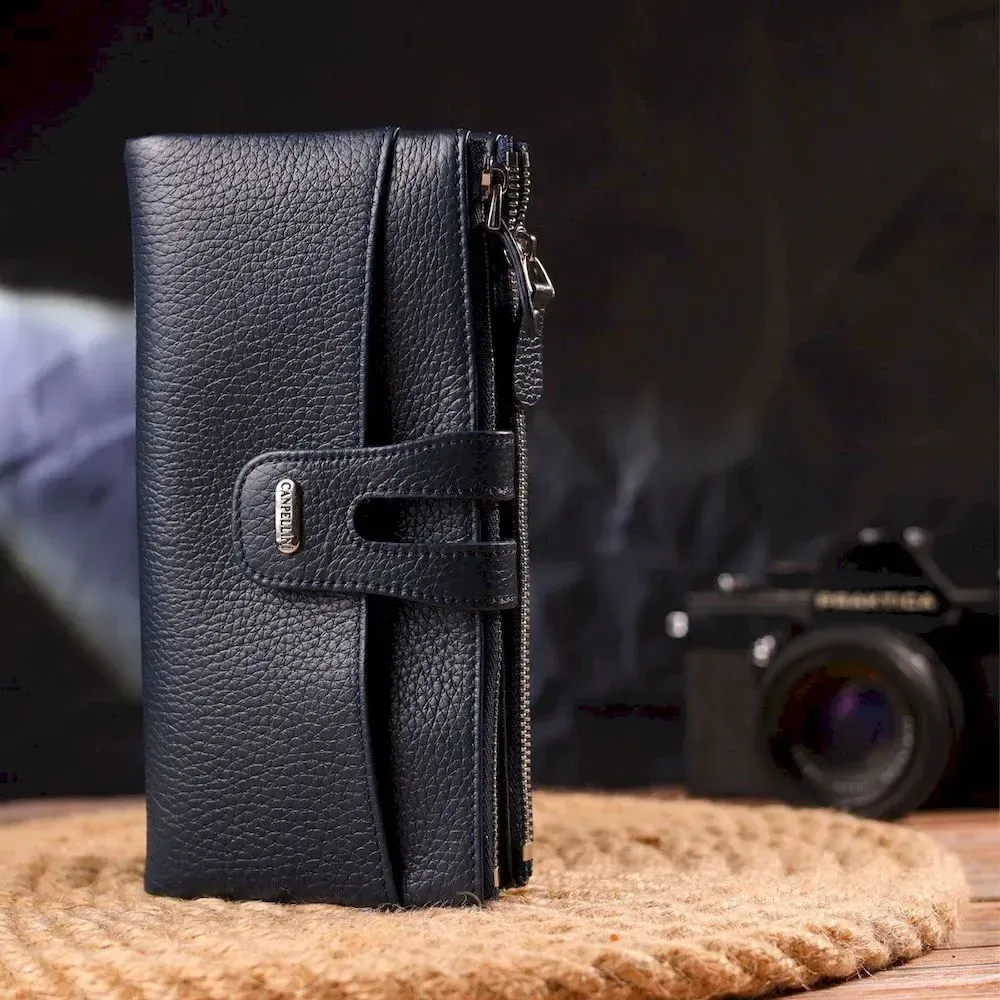 Зручний гаманець із натуральної зернистої шкіри CANPELLINI 21635 Синій