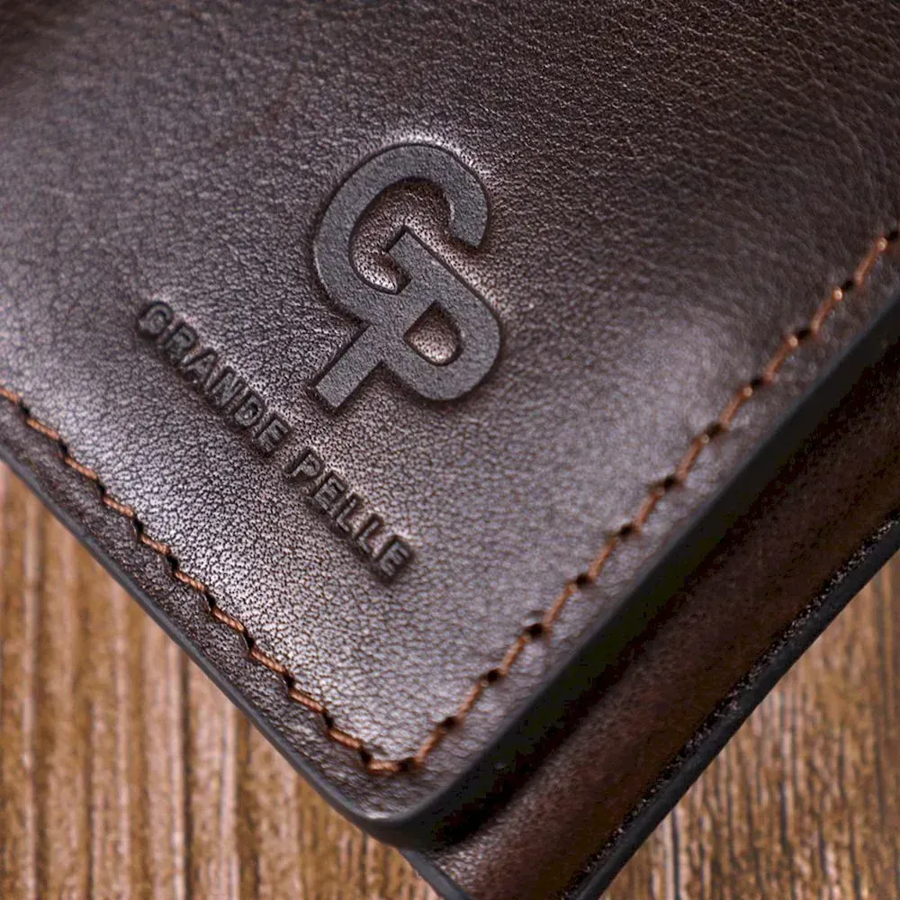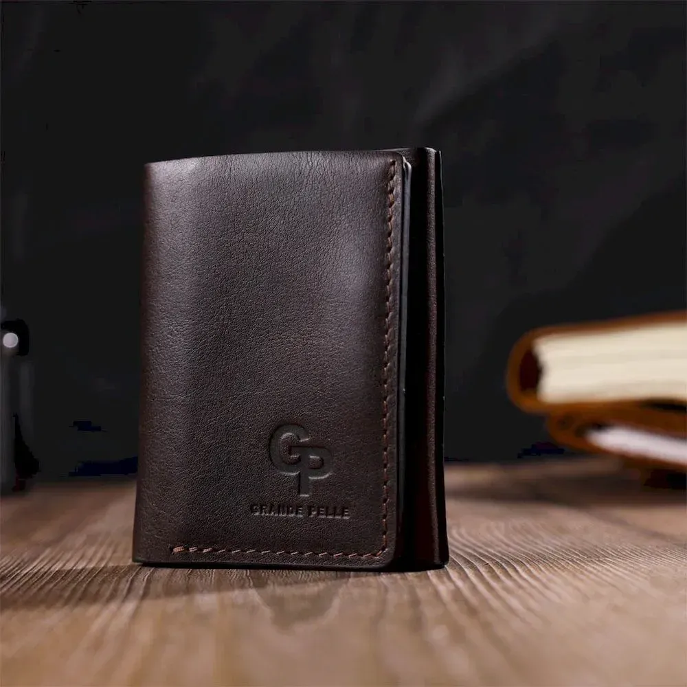 Зручний чоловічий гаманець у три складання GRANDE PELLE 16787 Темно-коричневий