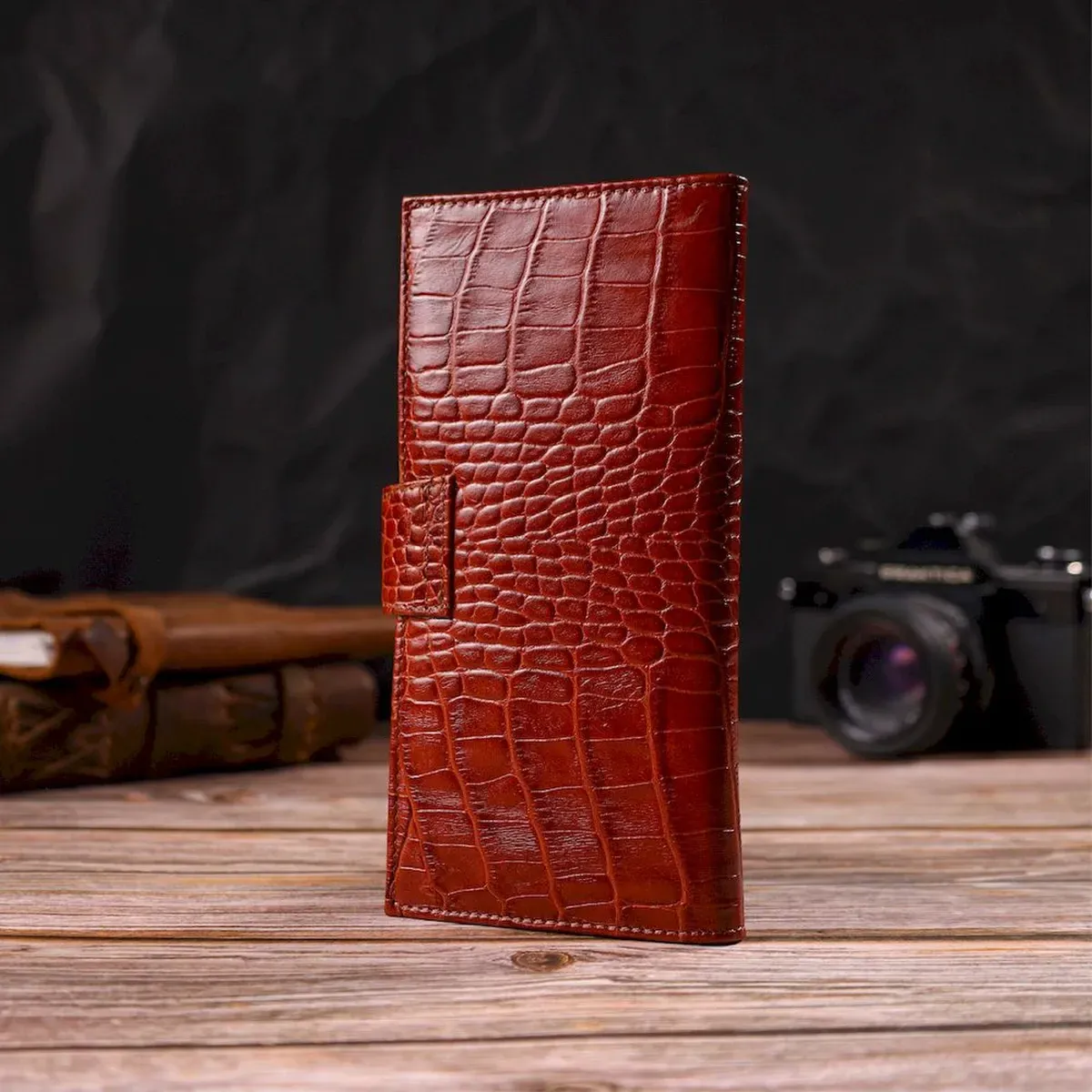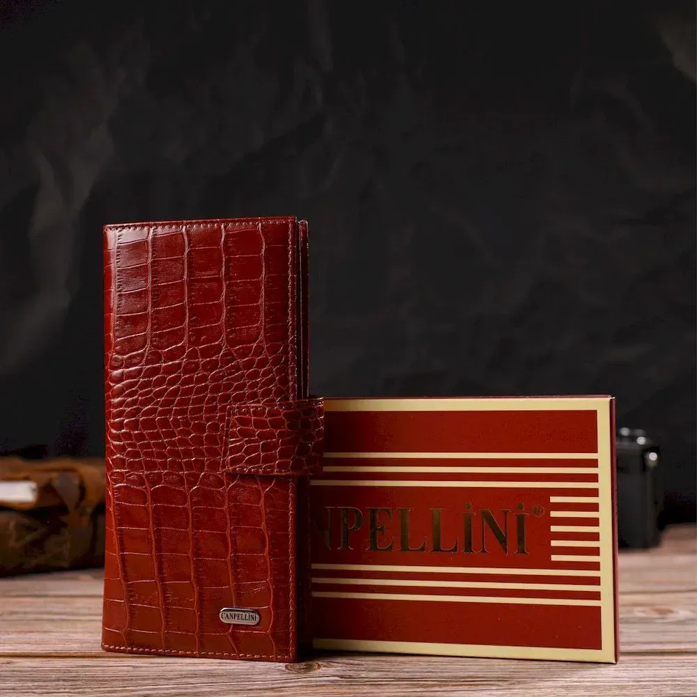 Ультрамодний гаманець для чоловіків з натуральної шкіри з тисненням під крокодила CANPELLINI 21918 Рудий