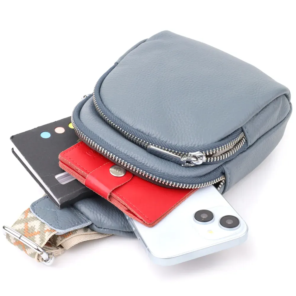 Універсальна жіноча сумка-слінг із натуральної шкіри Vintage 22937 Синій