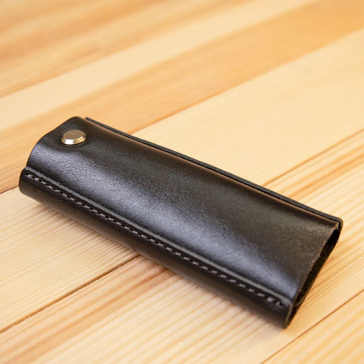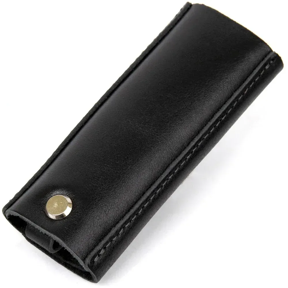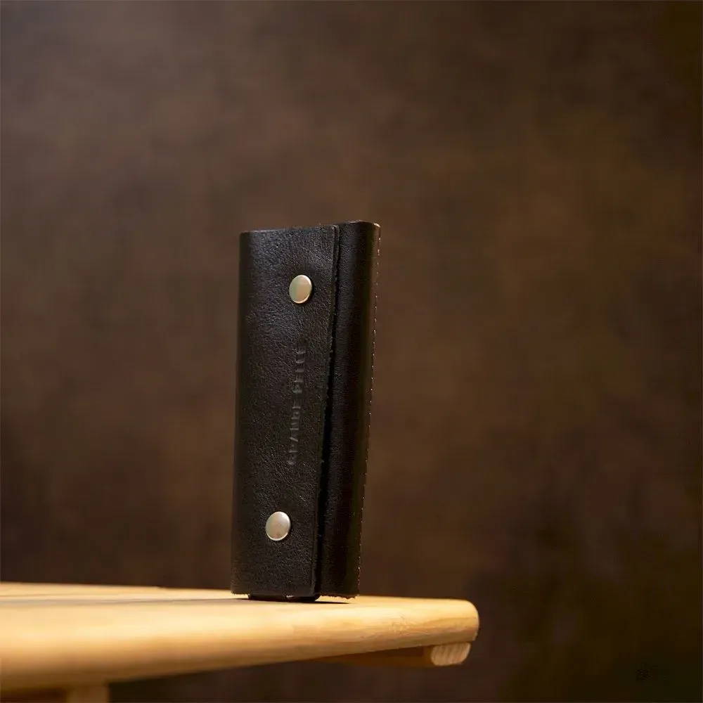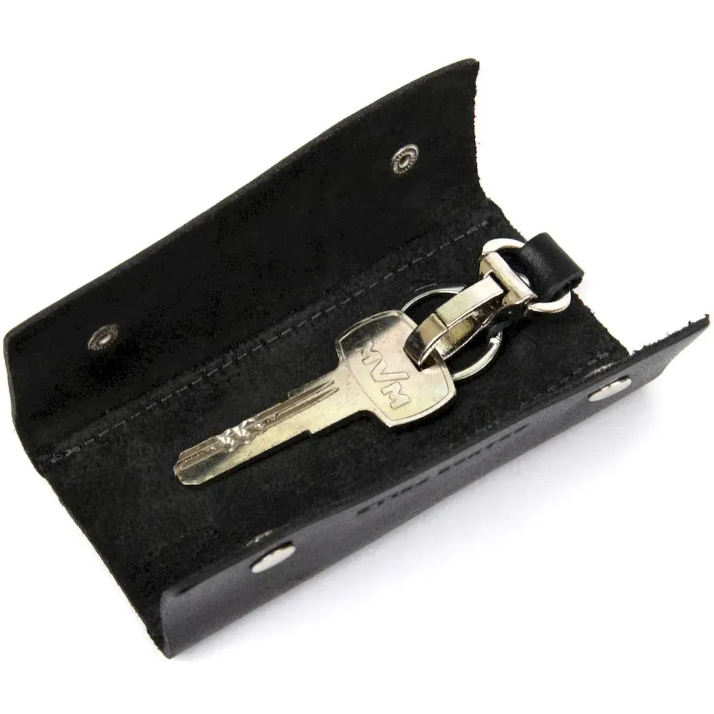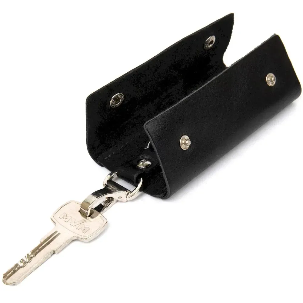 Шкіряна ключниця невеликого розміру для надежного зберігання ключів. Має стильну форму, закривається на дві металеві кнопки, шви надійно та акуратно прошиті у колір самої ключниці. Добре підійде як презент, упаковка представлена у вигляді стильного фірмового чохла.