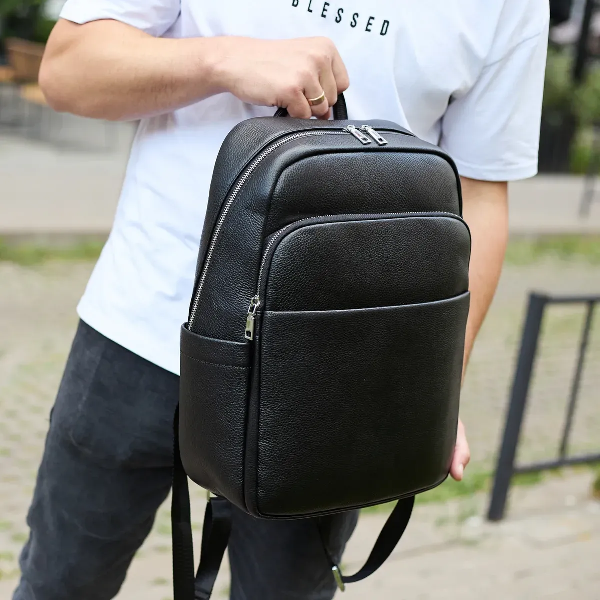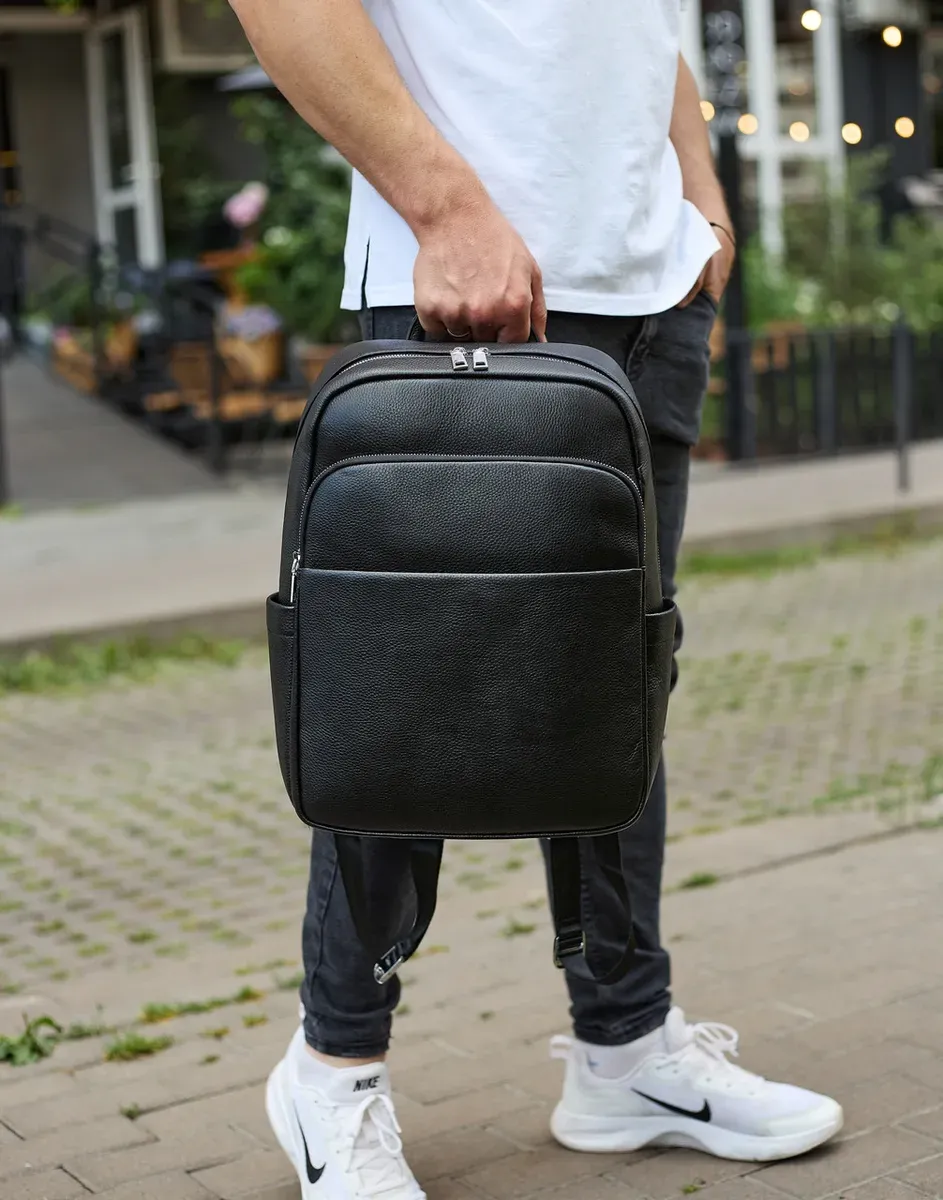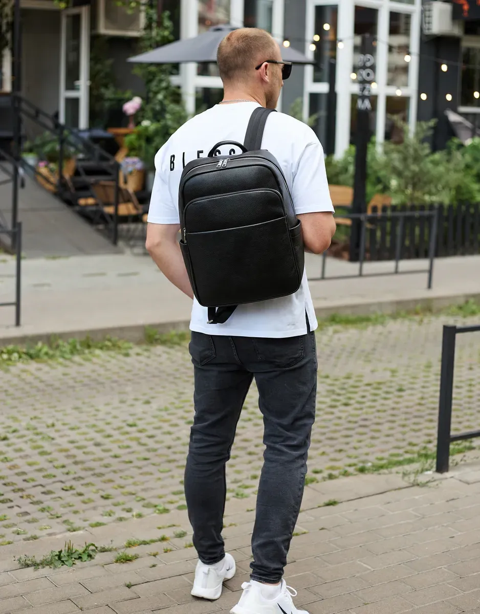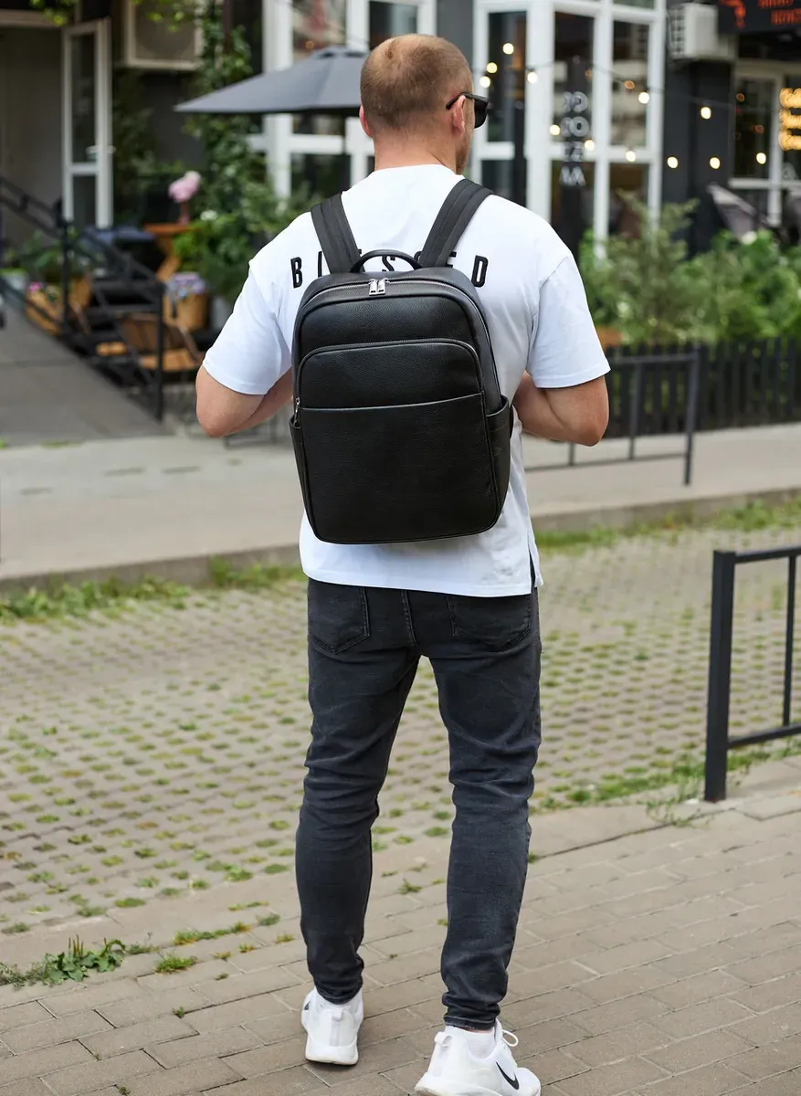 Універсальний чоловічий рюкзак із шкіри 41х31х16, зручний наплічник для ноутбука та документів, чорний