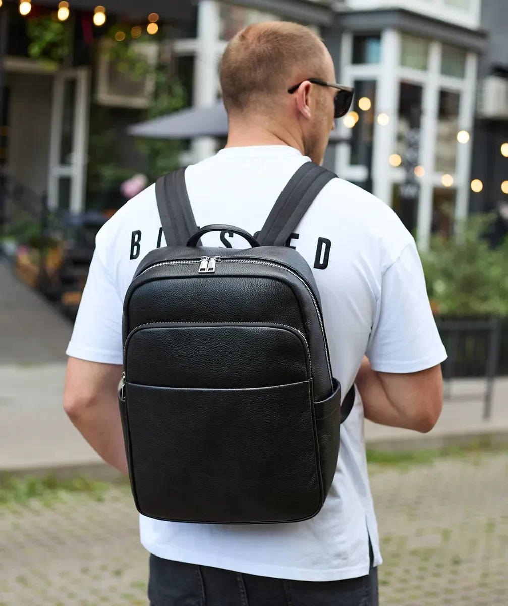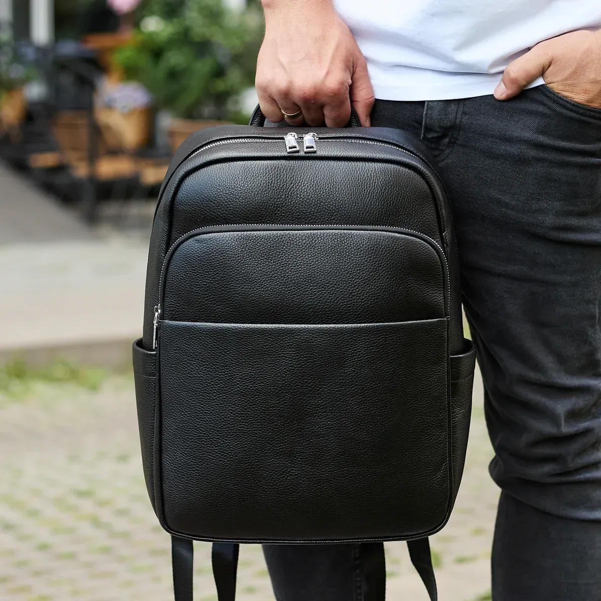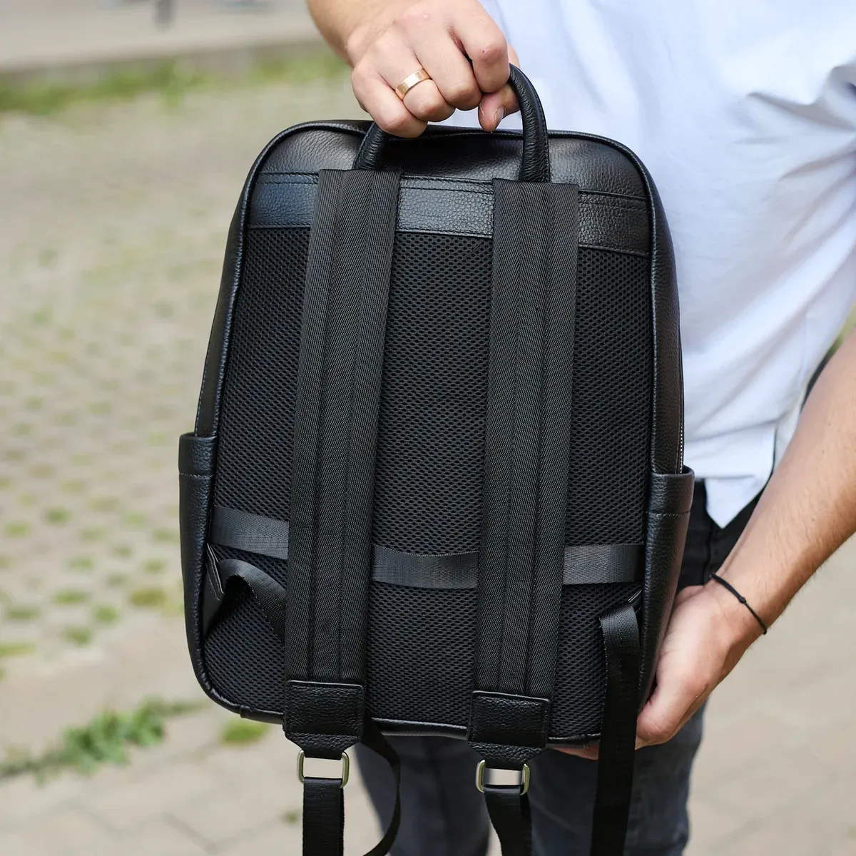 Універсальний чоловічий рюкзак із шкіри 41х31х16, зручний наплічник для ноутбука та документів, чорний