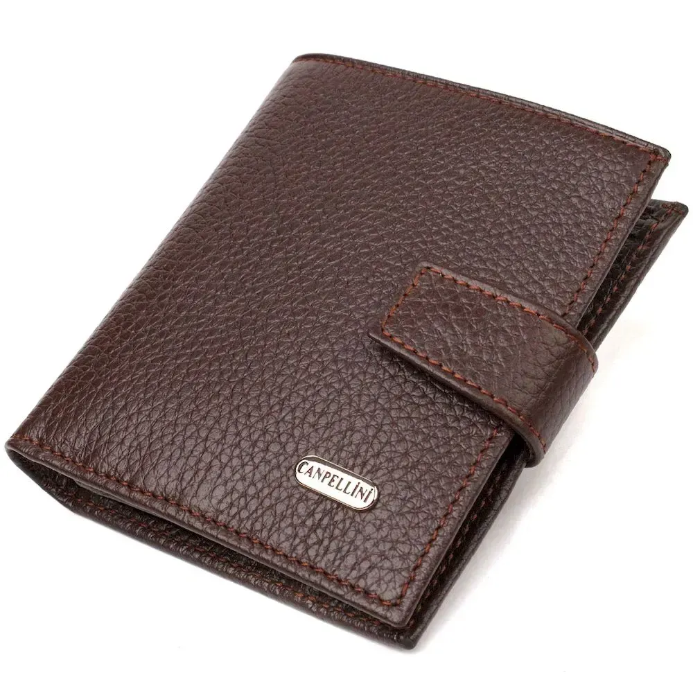 Універсальний чоловічий гаманець із натуральної зернистої шкіри CANPELLINI 21744 Коричневий