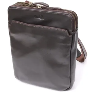 Вертикальна чоловіча сумка через плече із гладкої натуральної шкіри Shvigel 20868_1 Коричневий