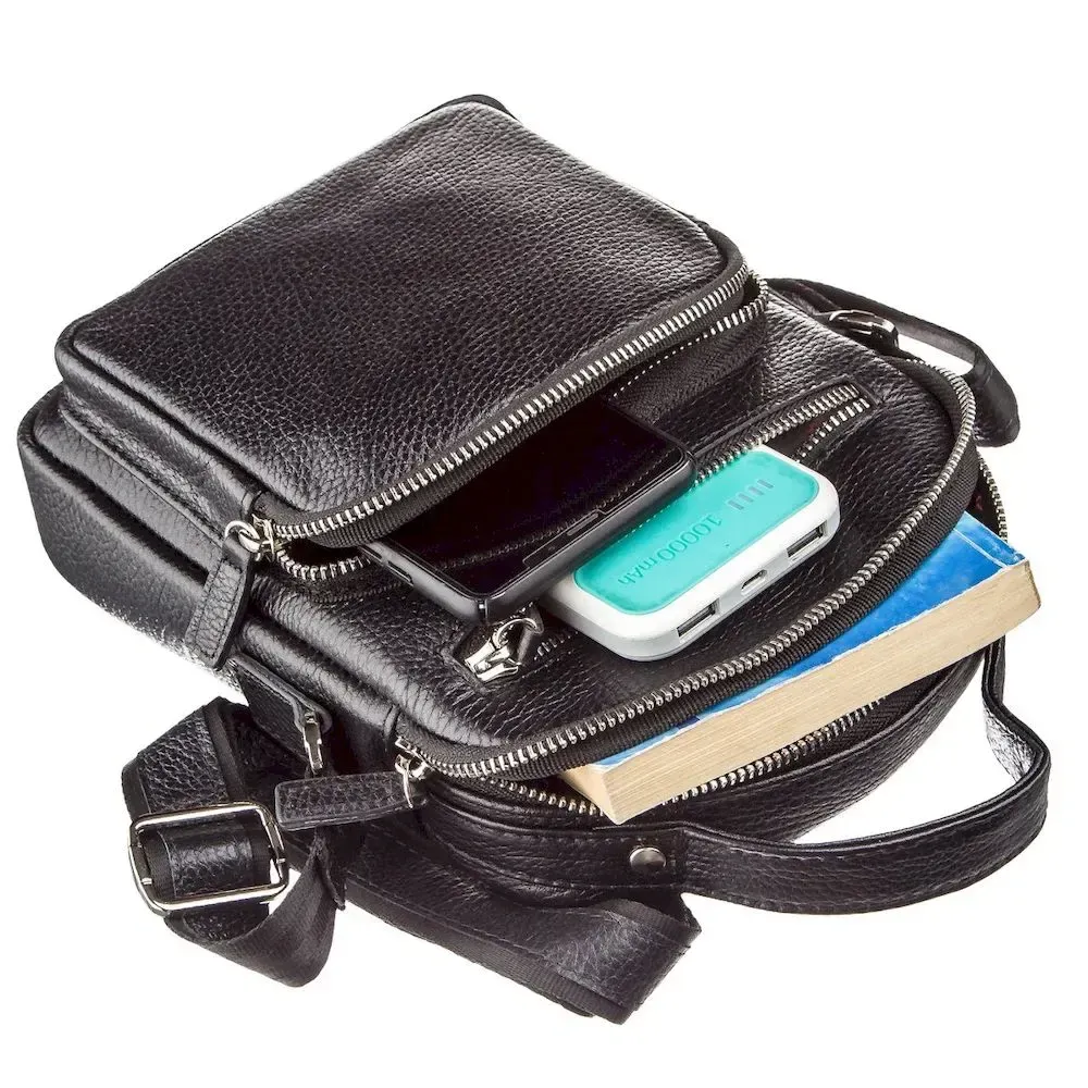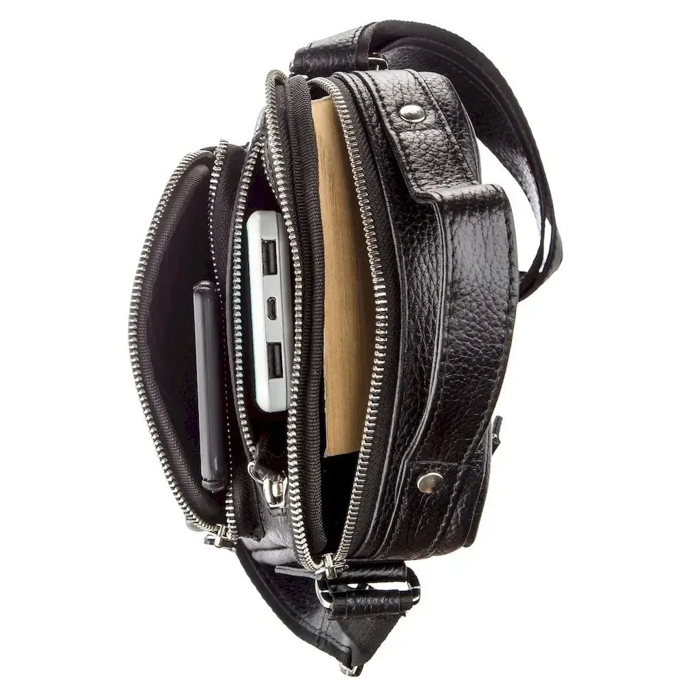 Оригінальна чоловіча сумка, яка з легкістю замінить вам барсетку. Сумка має заокруглену форму. Модель виконана в зернистій шкірі, яка дуже стійка до зношування. Компактний розмір сумки робить її привабливішим для щоденного використання. Наявність зручних відділень допоможе розмістити всі ваші речі та збереже їх у цілісності та безпеці.