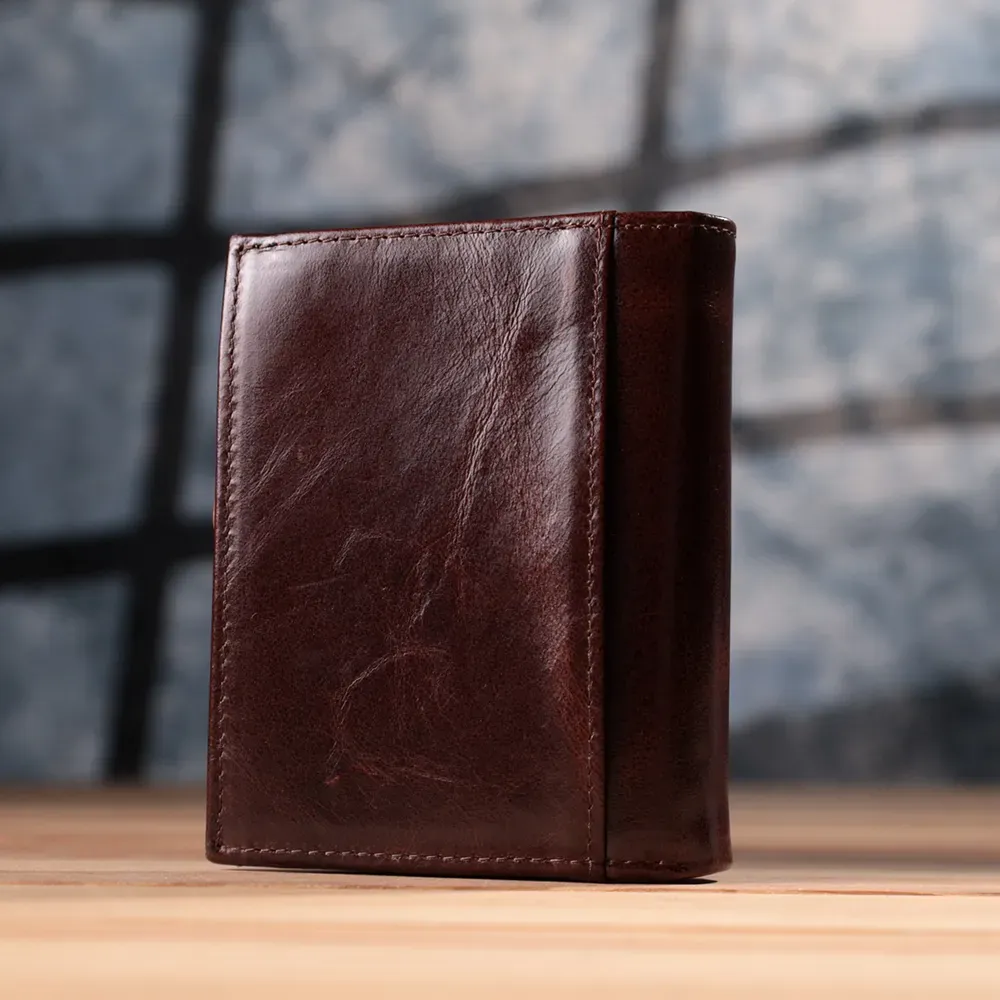 Вертикальний чоловічий гаманець із натуральної шкіри Vintage 15096 Коричневий