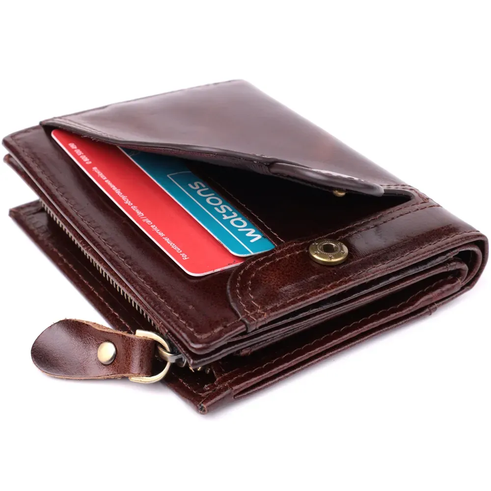 Цікава модель чоловічого гаманця із натуральної шкіри. Аксесуар прошитий по краях світло-коричневою ниткою. Модель невеликого розміру і поміститься у кишеню чи сумку. Модель оснащена найнеобхіднішим функціоналом для будь-якої людини. Якщо Ви вирішите вибрати такий аксесуар на подарунок для близької людини точно не помилитеся.