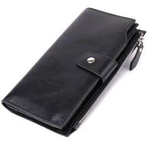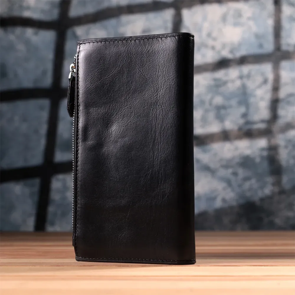 Вертикальний стильний гаманець із гладкої натуральної шкіри Vintage 22885 Чорний