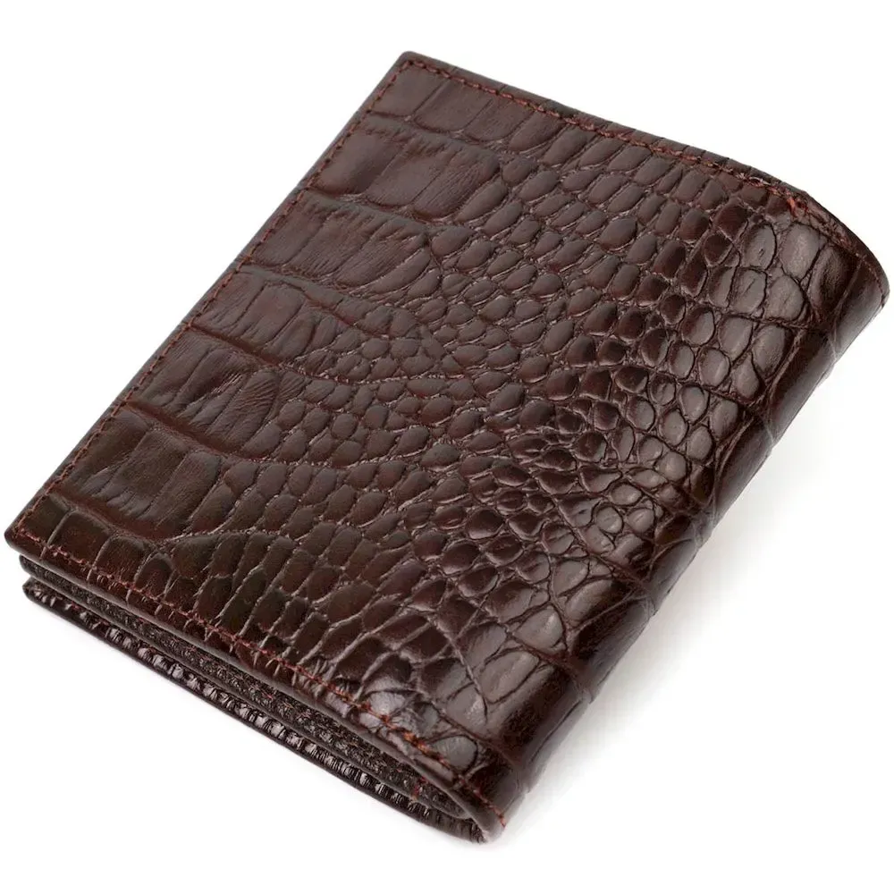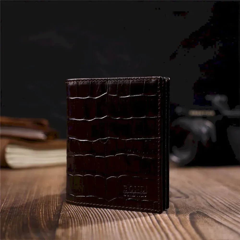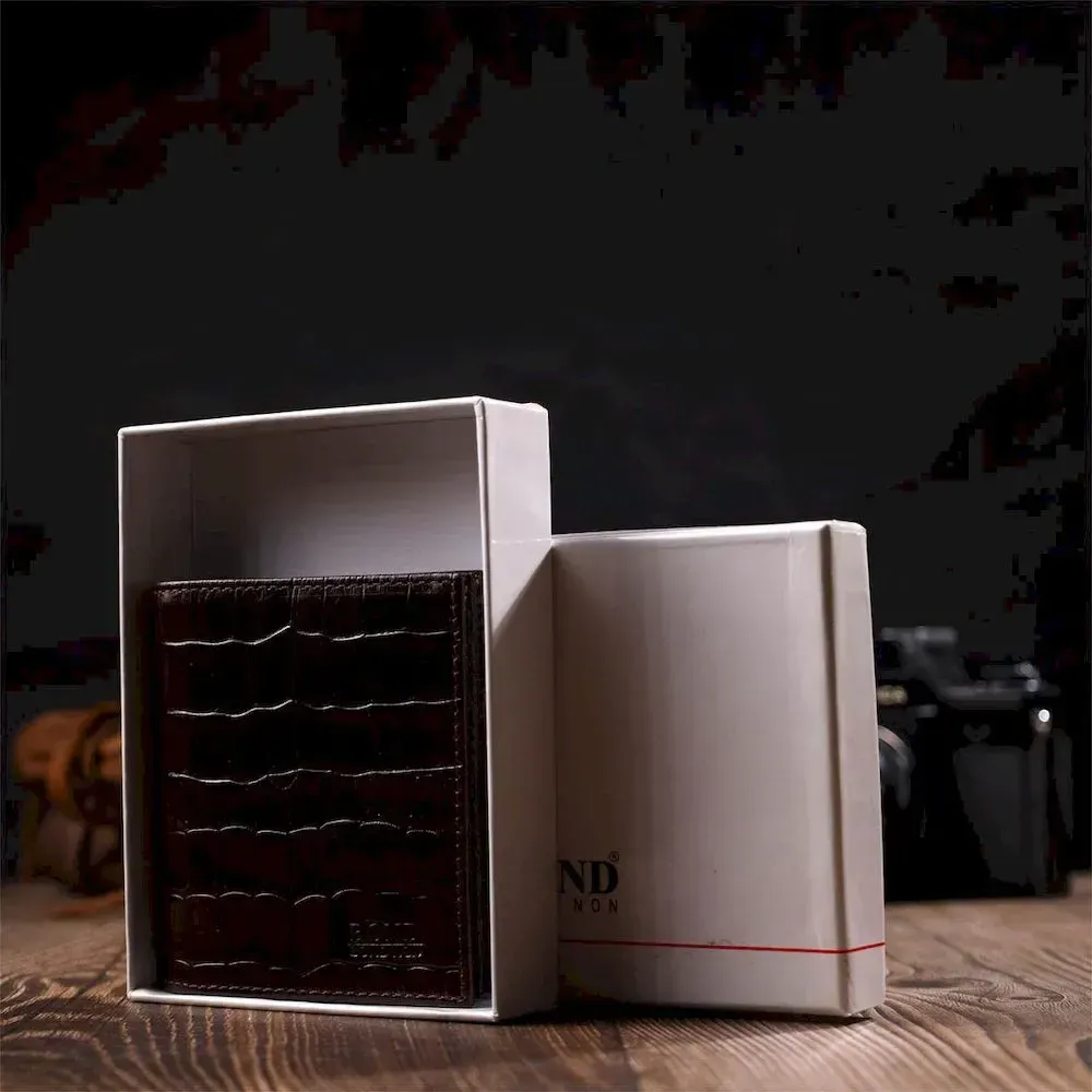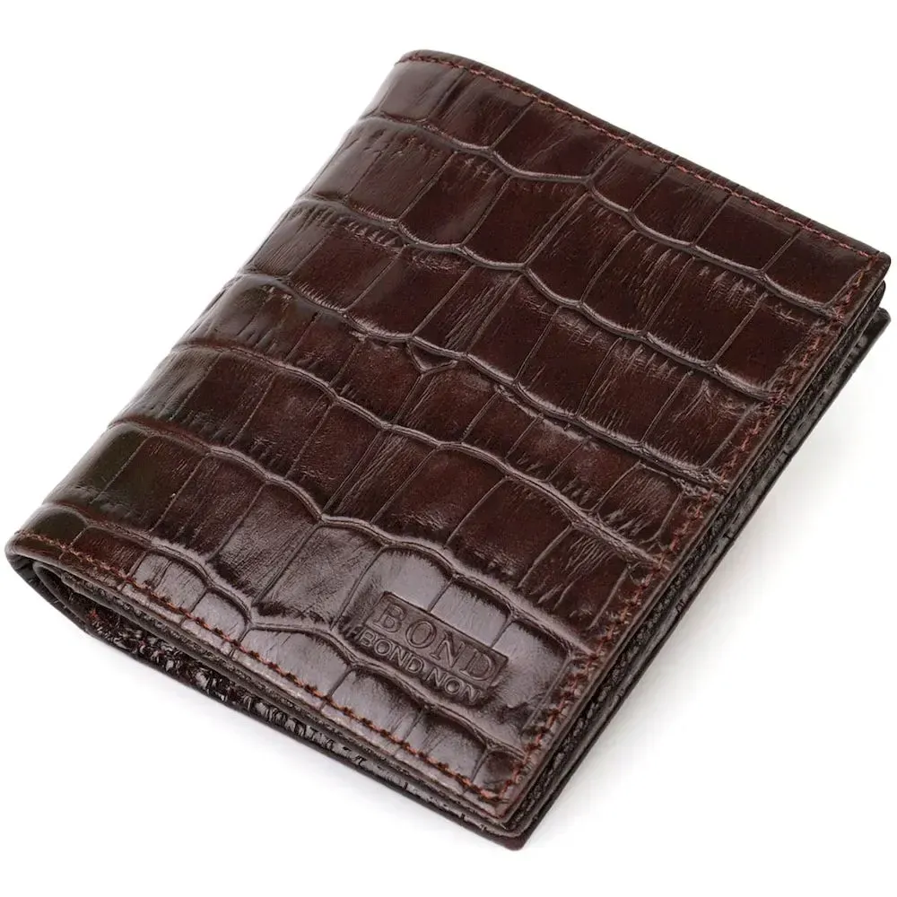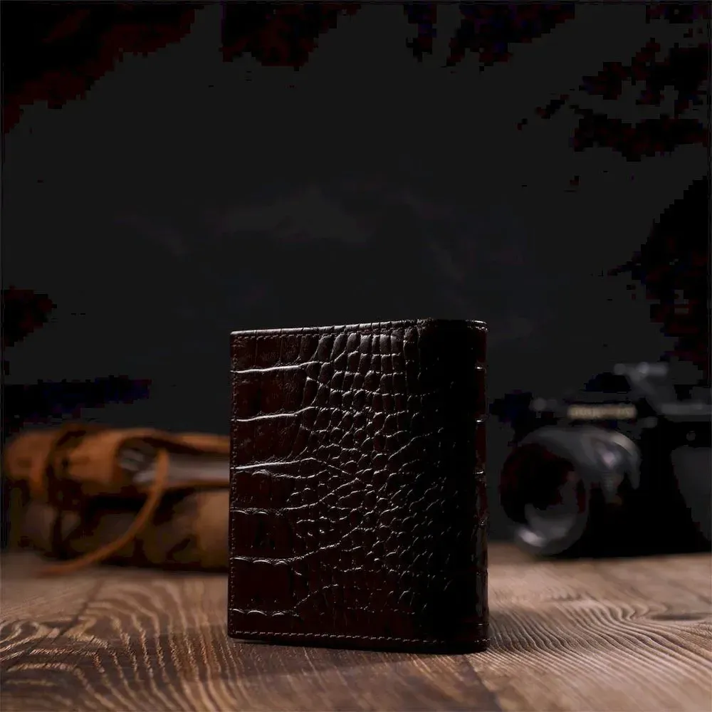 Вертикальне фактурне портмоне для чоловіків з натуральної шкіри з тисненням під крокодила BOND 22061 Коричневий