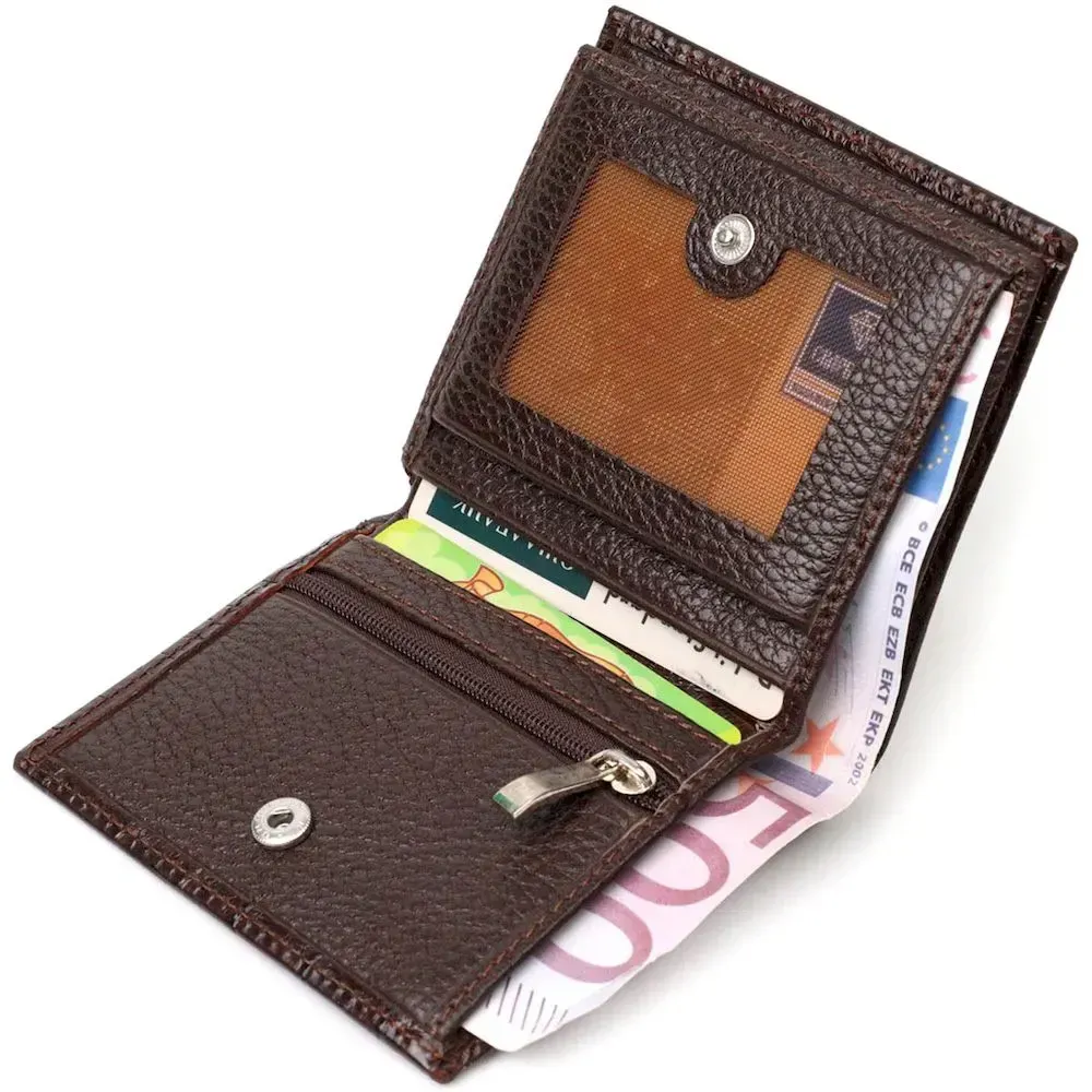 Гарний чоловічий гаманець з натуральної шкіри з тисненням під крокодила. У цей аксесуар чудово поміщаються купюри всіх номіналів. Виріб складається з двох відділень для купюр, семи осередків для кредиток (одна з них під сіткою), п'яти прихованих кишень та монетниці на блискавці. Закривається гаманець навпіл на кнопку та магніт. Вироби з натуральної шкіри завжди будуть чудовим подарунком для близької людини.