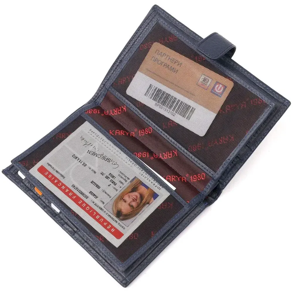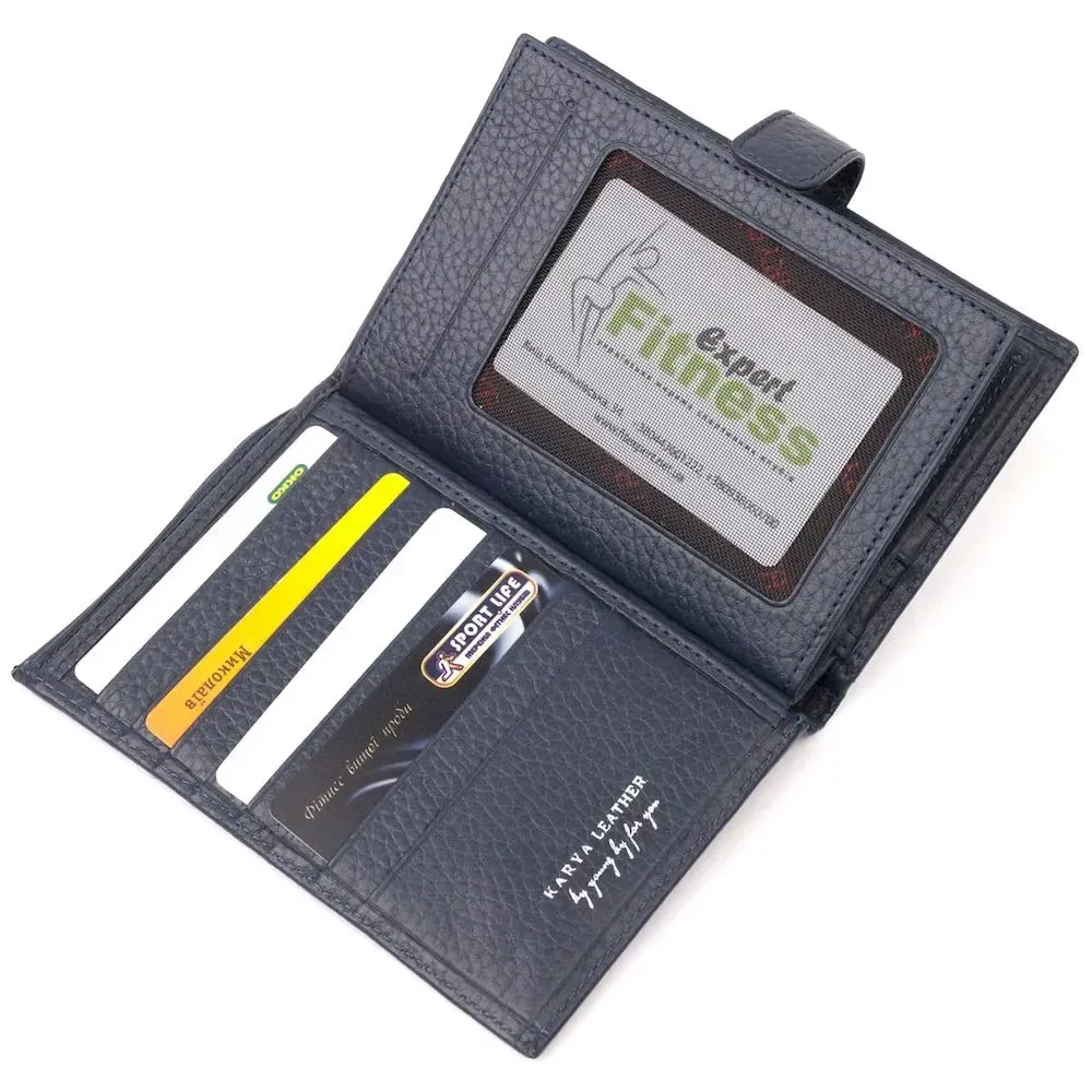 Вертикальне чоловіче портмоне з хлястиком із натуральної шкіри KARYA 21190 Синій