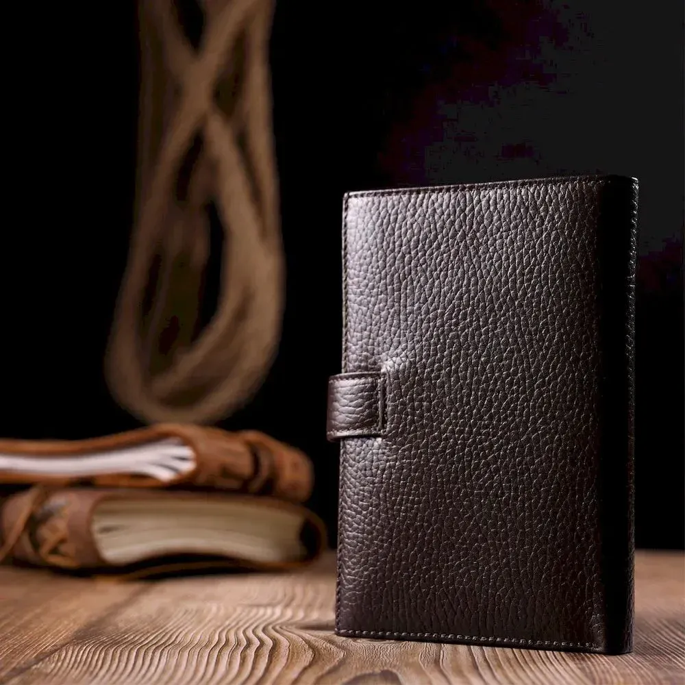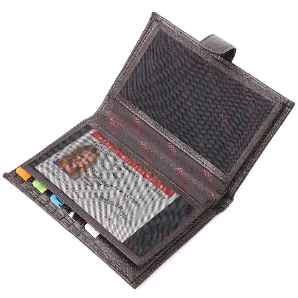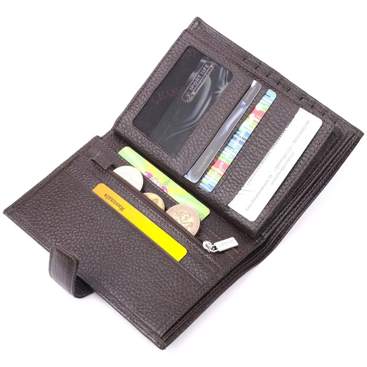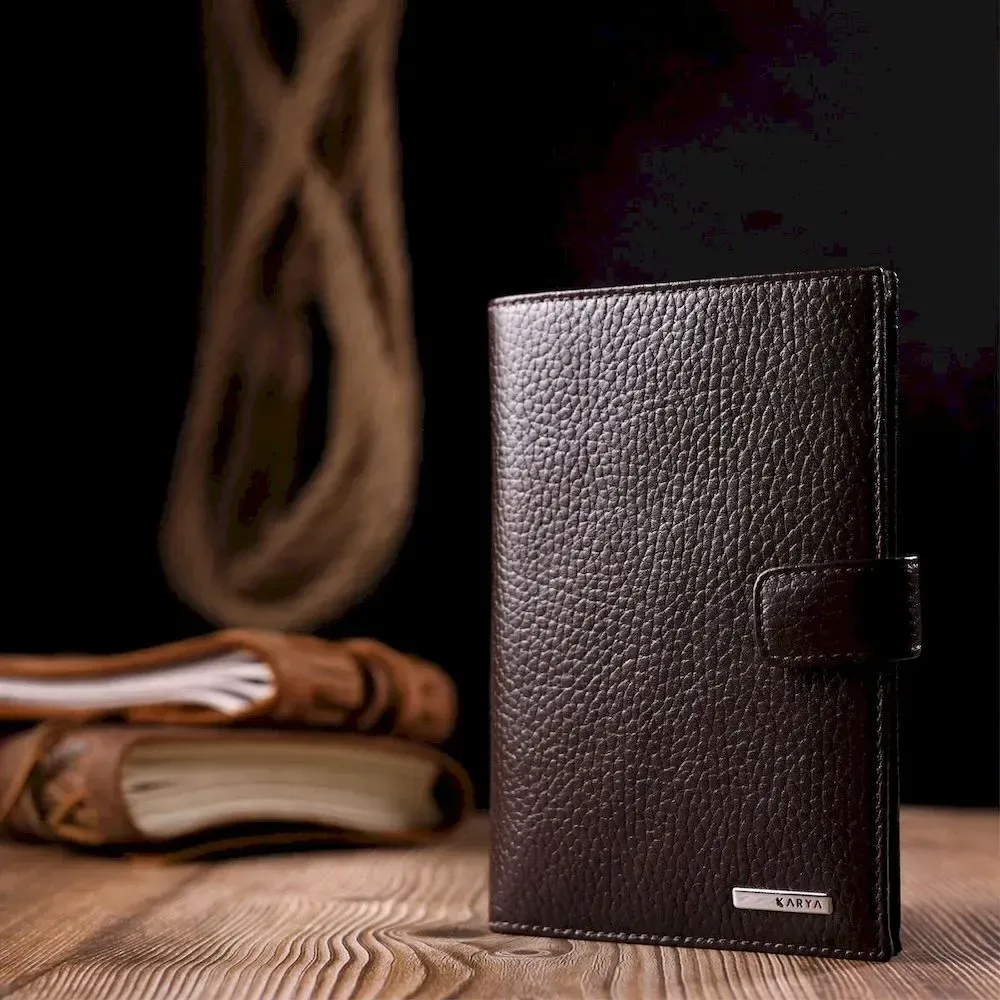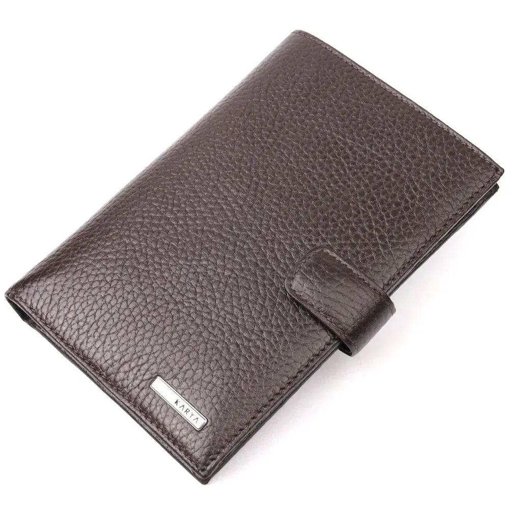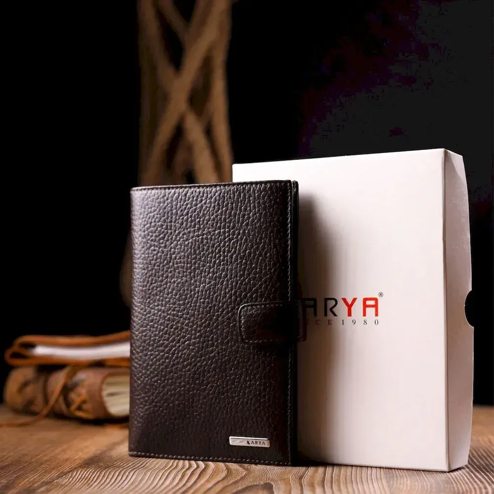 Вертикальний чоловічий портмоне з хлястиком з натуральної шкіри KARYA 21192 Коричневий