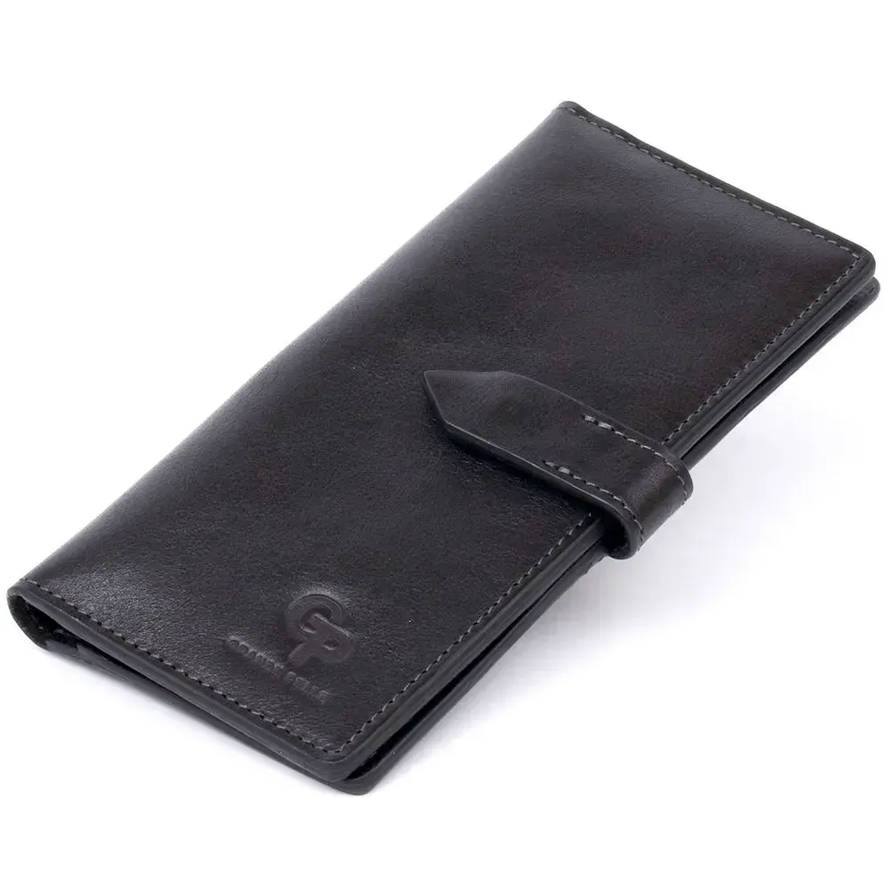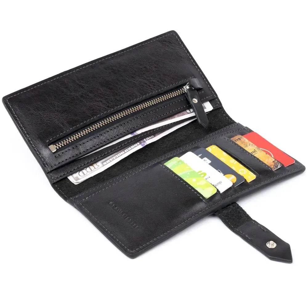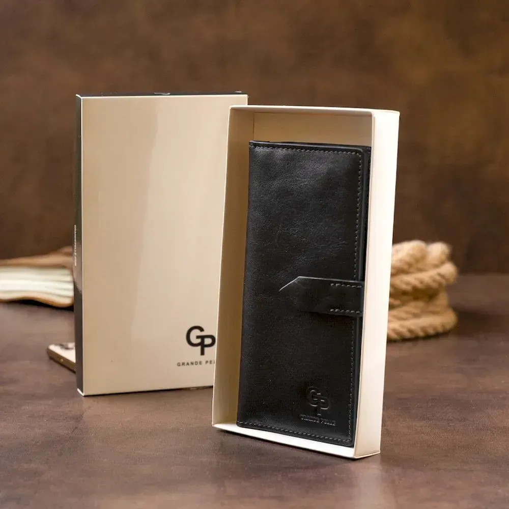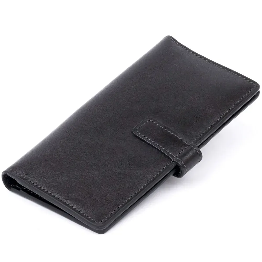 Вертикальний гаманець глянцевий Anet на кнопці GRANDE PELLE 11324 Чорний