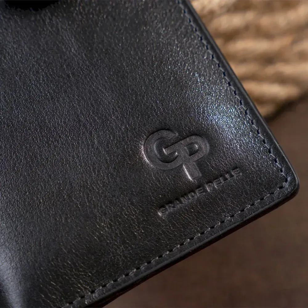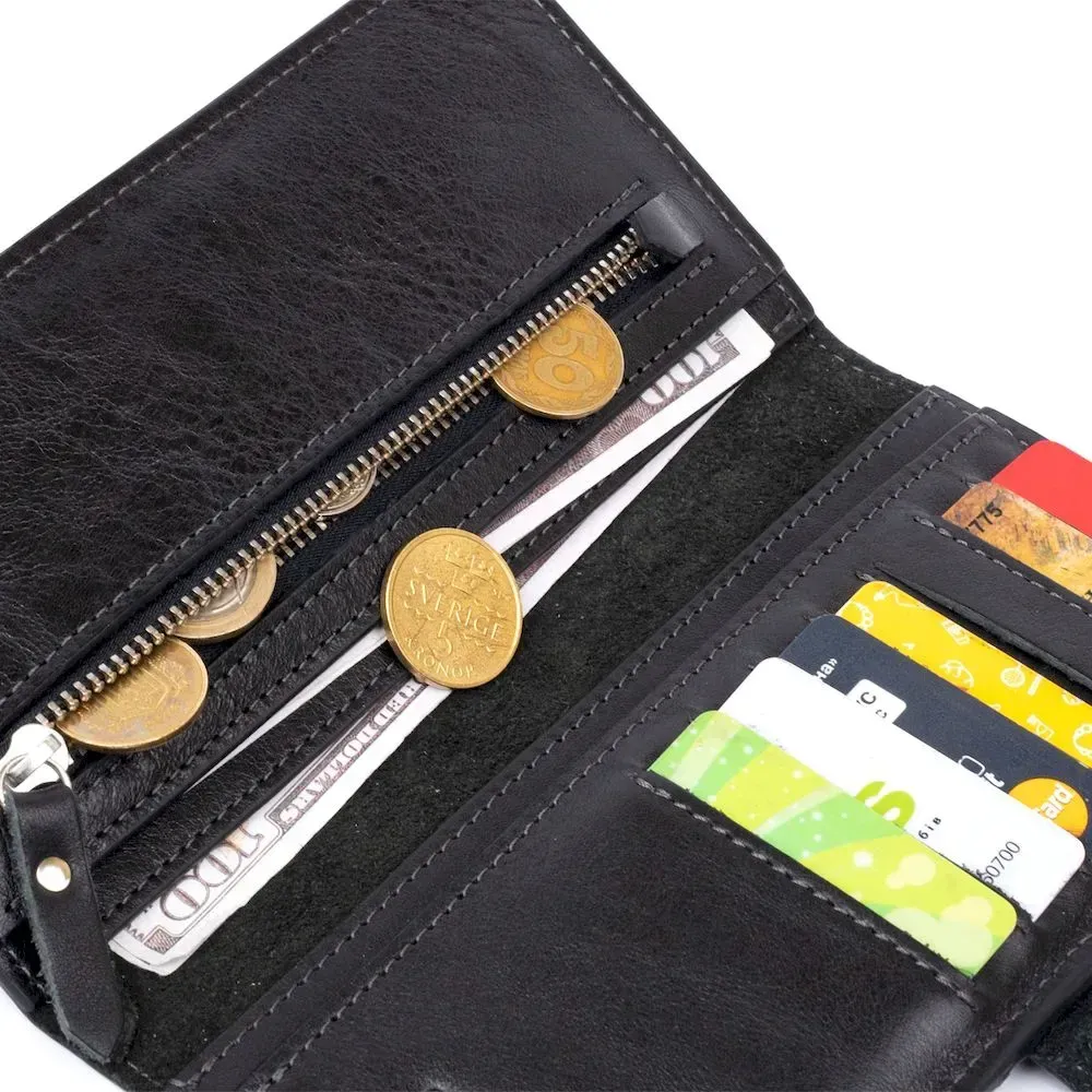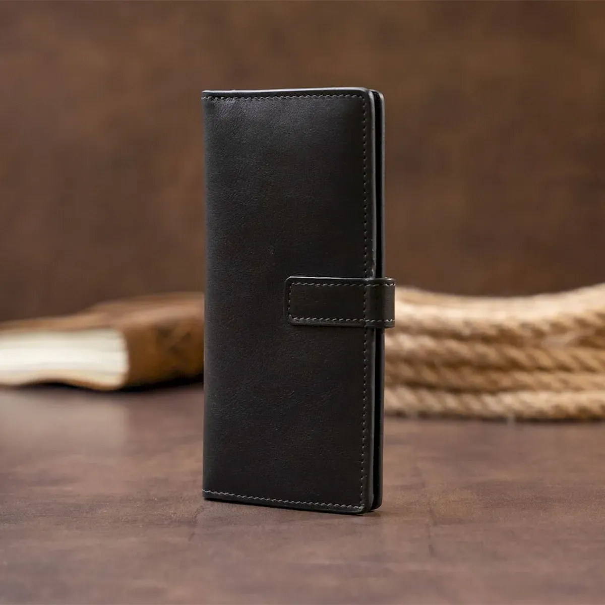Вертикальний гаманець глянцевий Anet на кнопці GRANDE PELLE 11324 Чорний