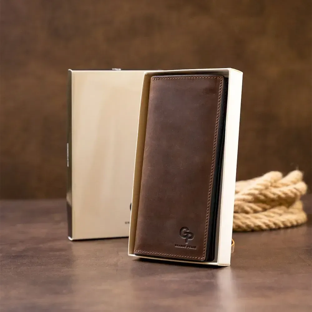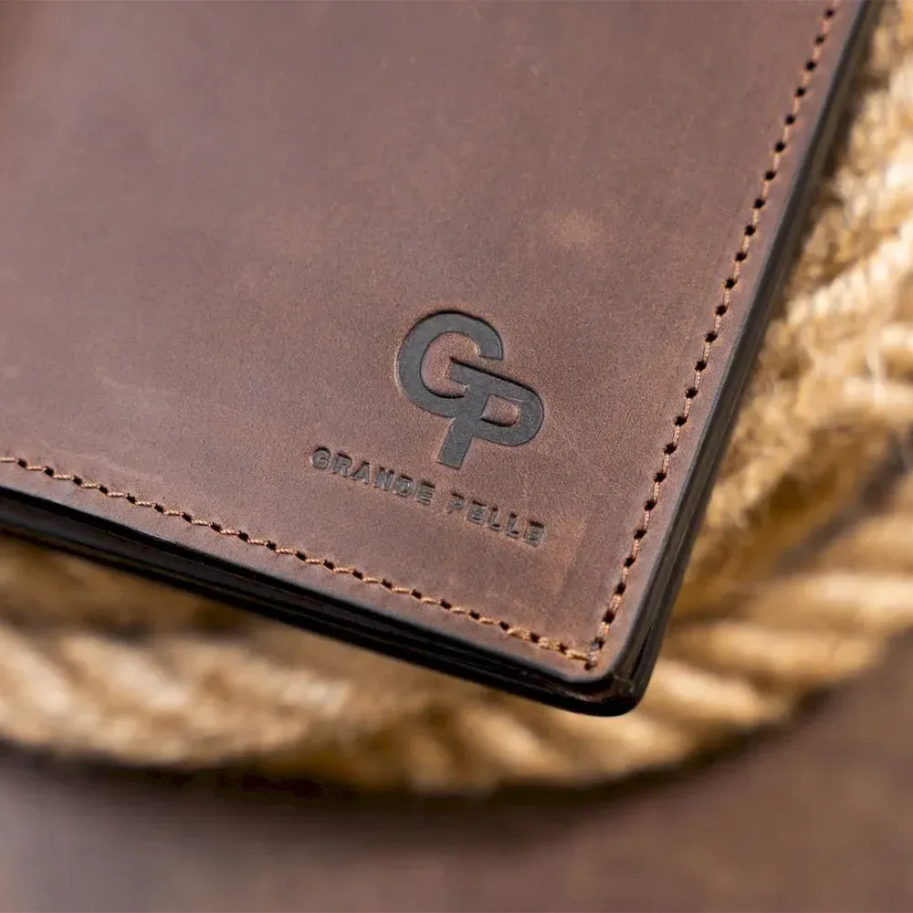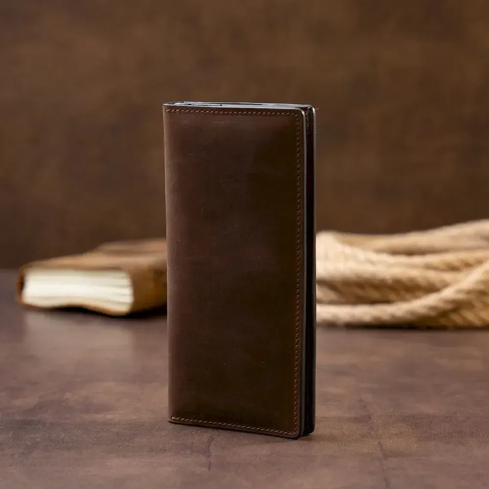 Вертикальний гаманець матовий на магнітній кнопці GRANDE PELLE 11314 Шоколадний