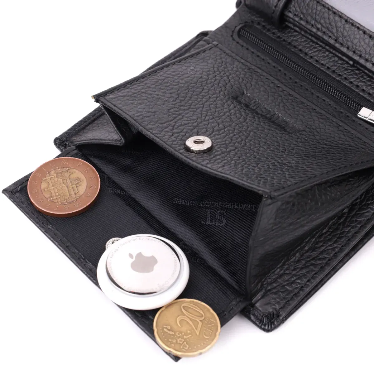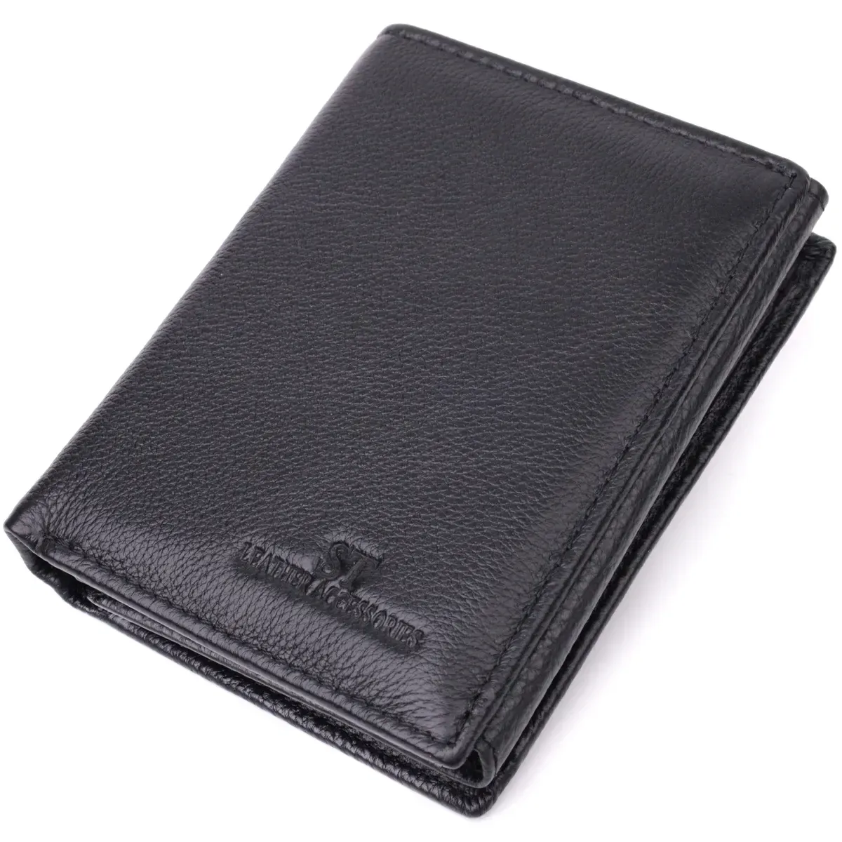 Вертикальний гаманець для стильних чоловіків із натуральної шкіри ST Leather 22464 Чорний