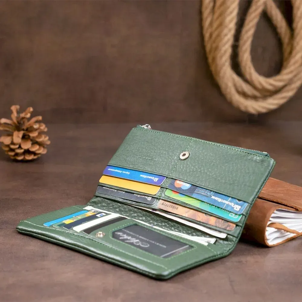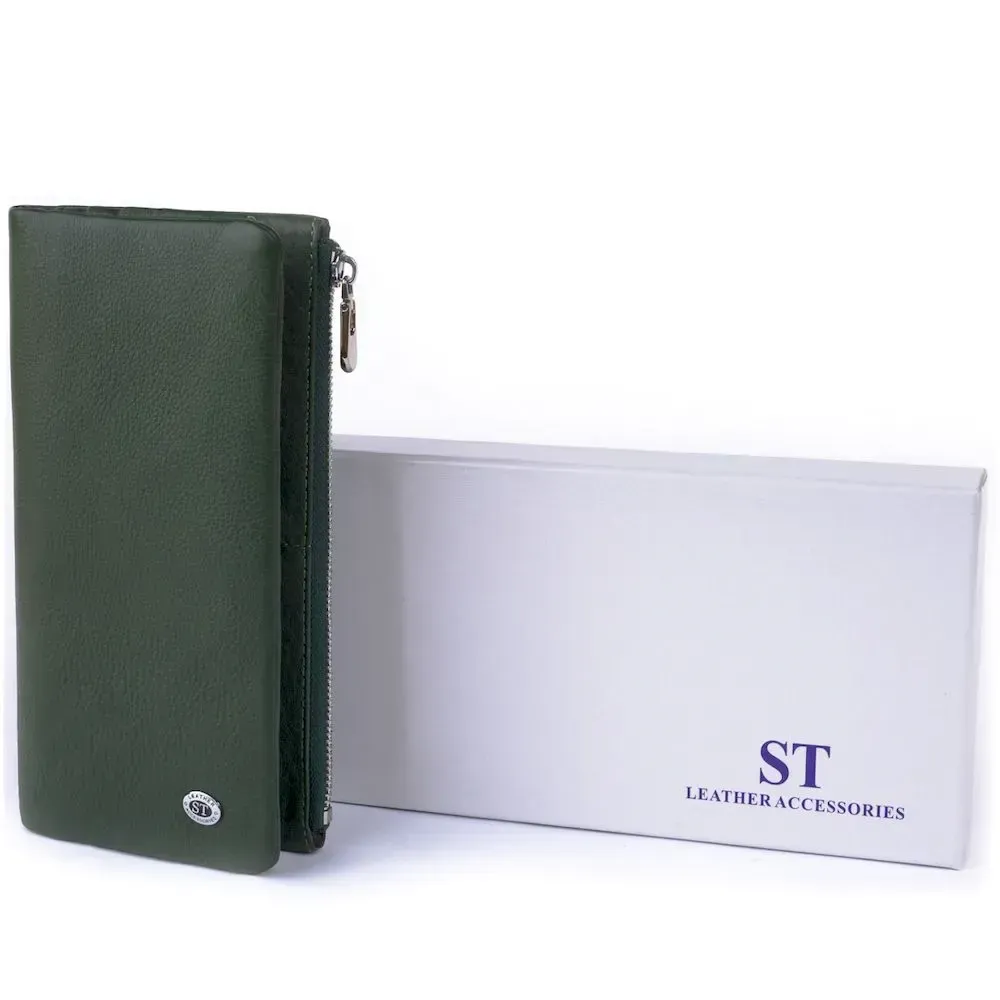 Вертикальний гаманець на кнопці унісекс ST Leather 19207 Зелений