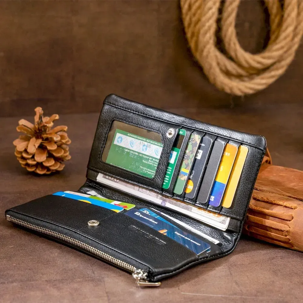 Вертикальний гаманець на кнопці жіночий ST Leather 19200 Чорний