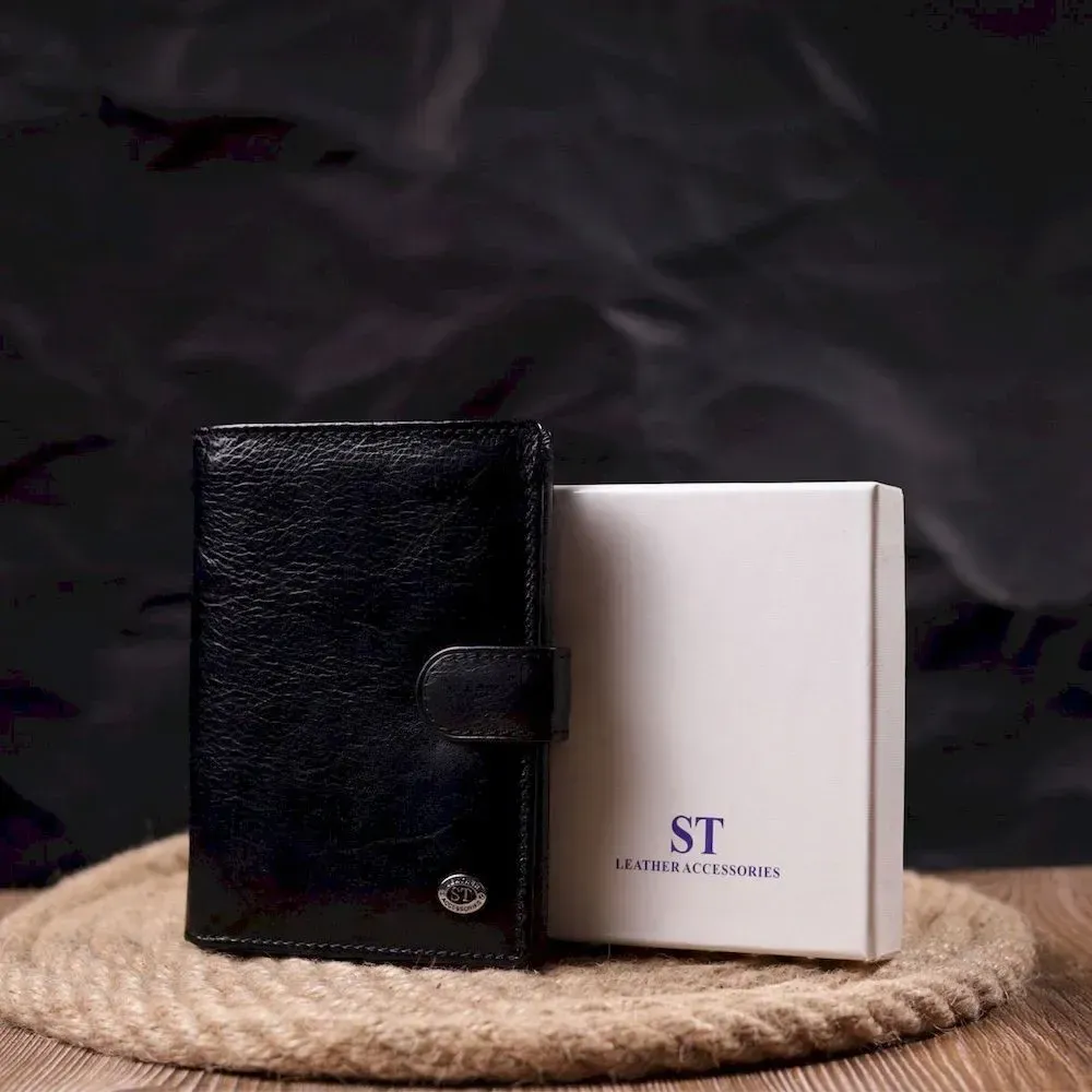 Вертикальний чоловічий гаманець із натуральної шкіри ST Leather 19406 Чорний