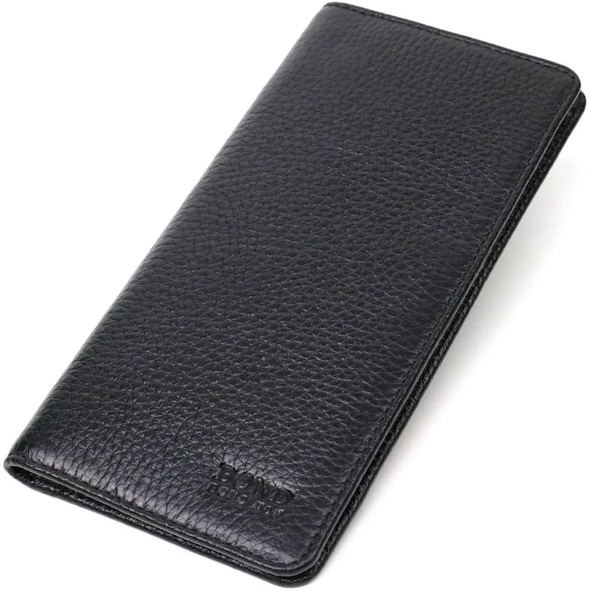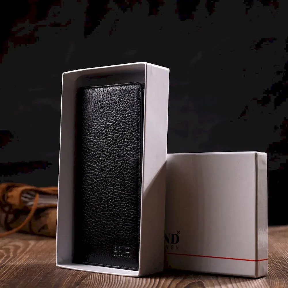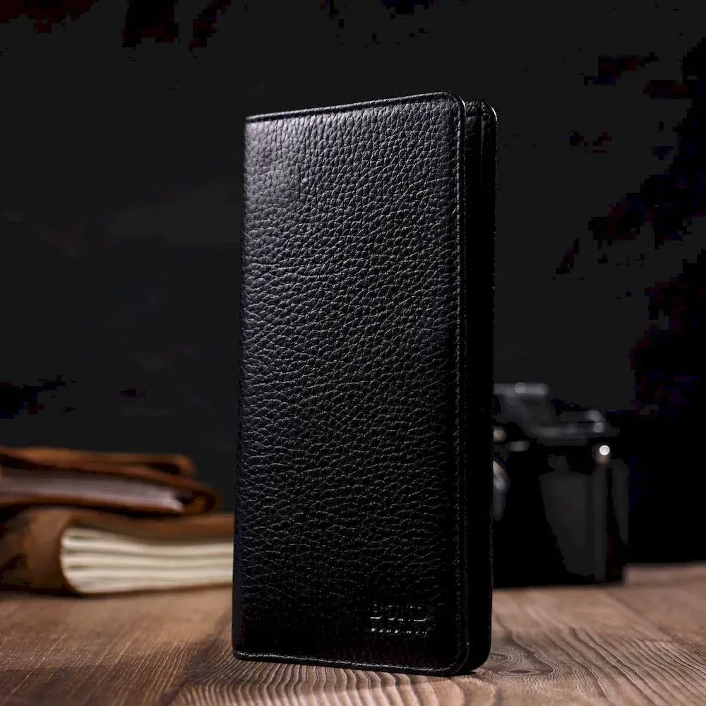 Вертикальний чоловічий гаманець із натуральної зернистої шкіри BOND 21983 Чорний