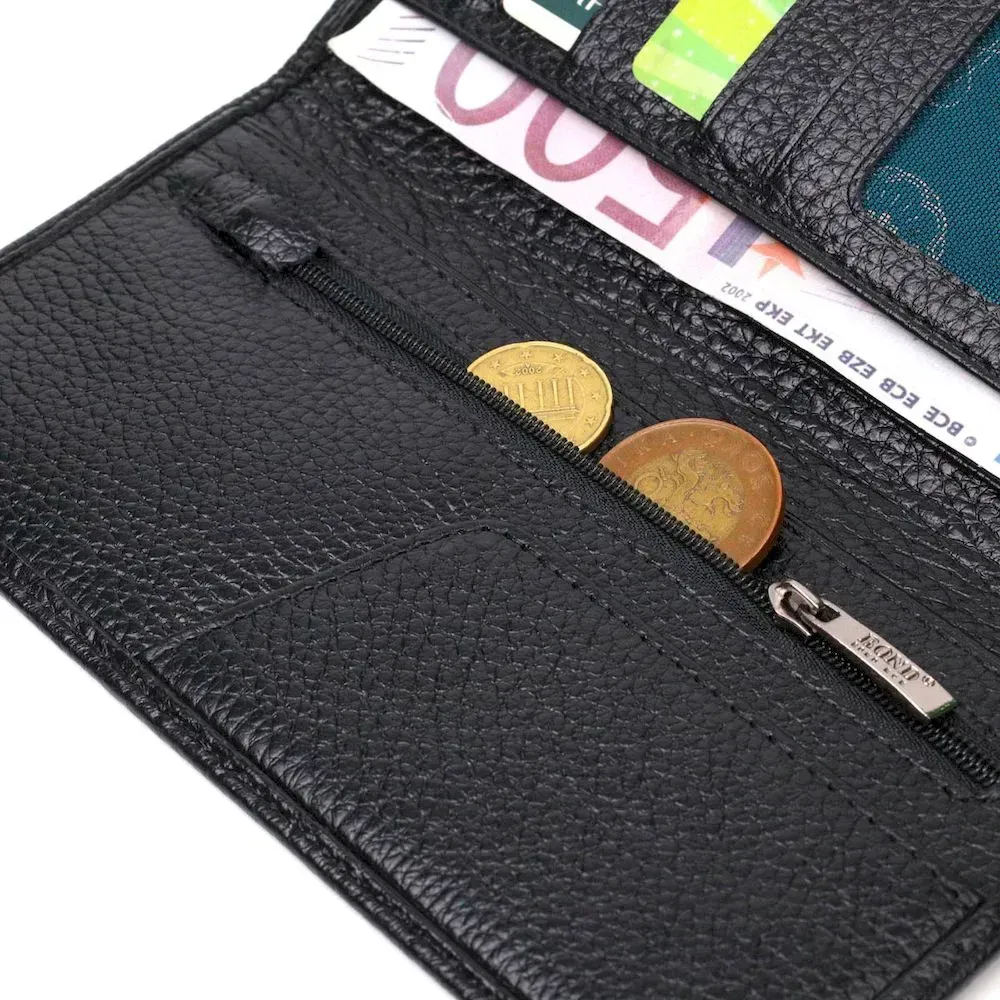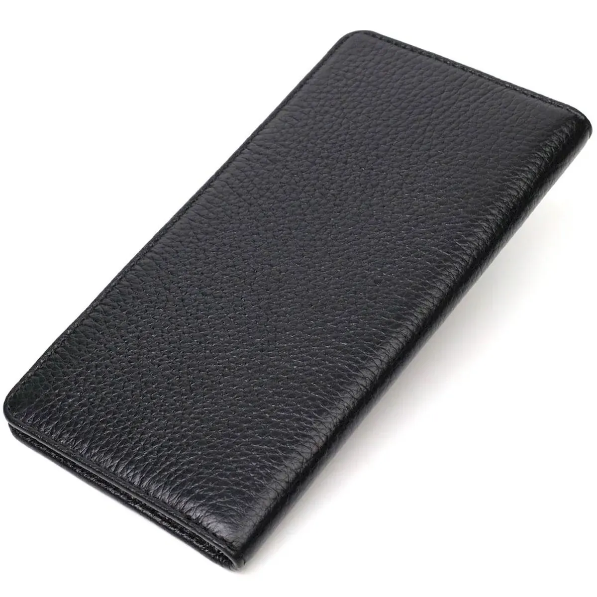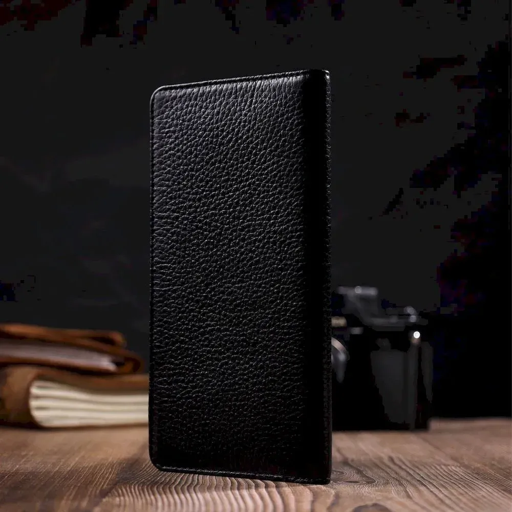 Вертикальний чоловічий гаманець із натуральної зернистої шкіри BOND 21983 Чорний