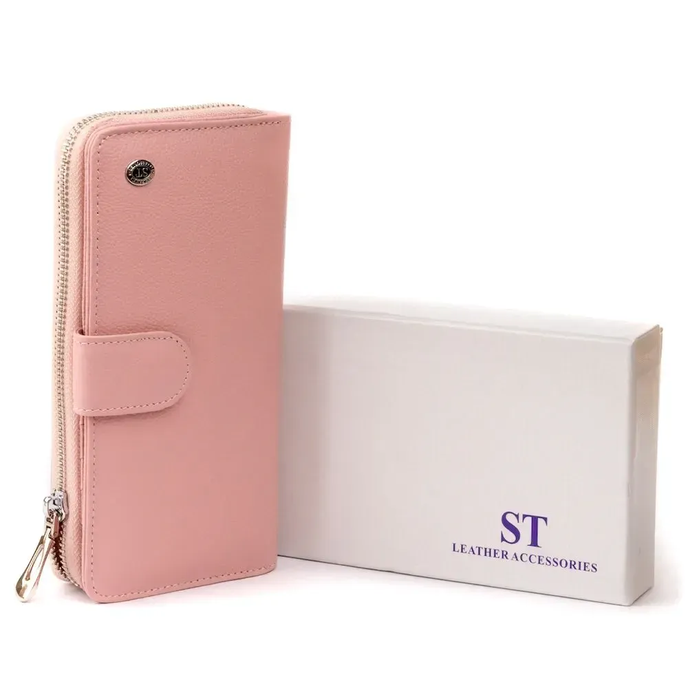 Вертикальний місткий гаманець зі шкіри ST Leather 19303 Рожевий
