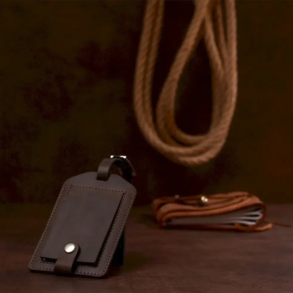 Бірка на валізу – це незамінний аксесуар під час подорожей, адже вона у багато разів підвищує можливість знайти свій втрачений багаж або просто позначити Ваші речі. Виконана вона із натуральної висококласної шкіри з відмінними показниками міцності. Ремінець для кріплення може регулюватися за довжиною. Колір виробу – універсальний коричневий.