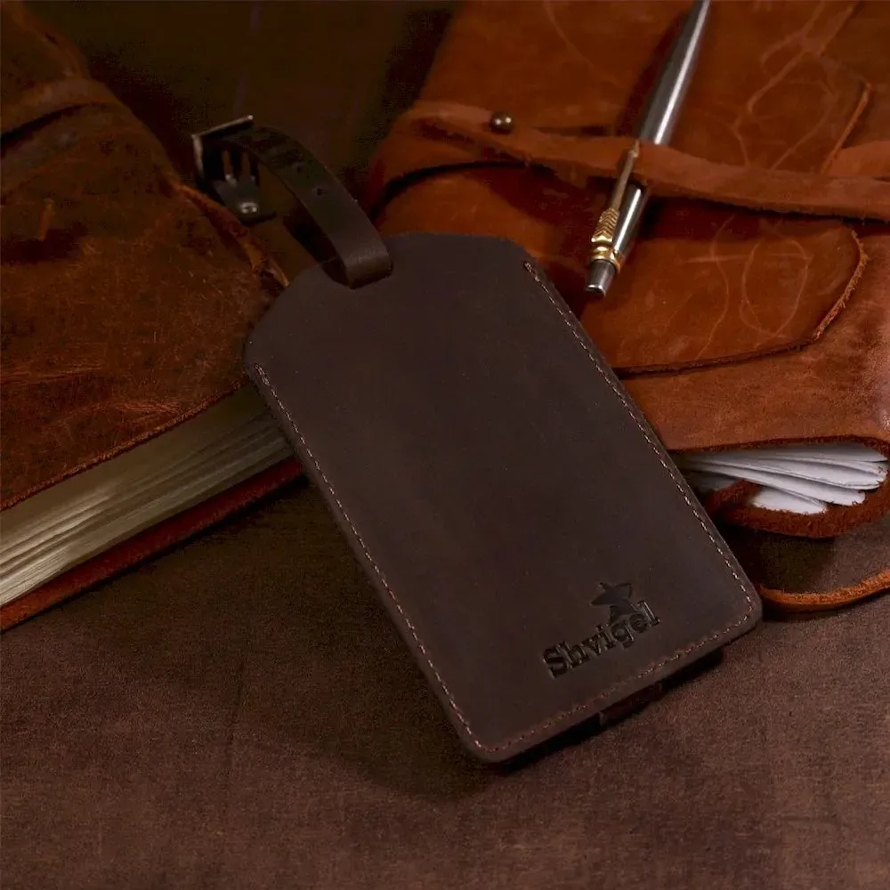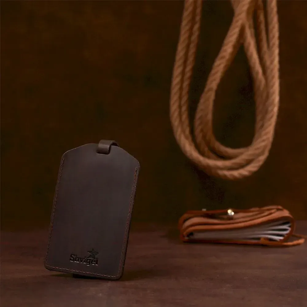 Урожай бірка на валізу з натуральної шкіри Shvigel 16555 Коричневий