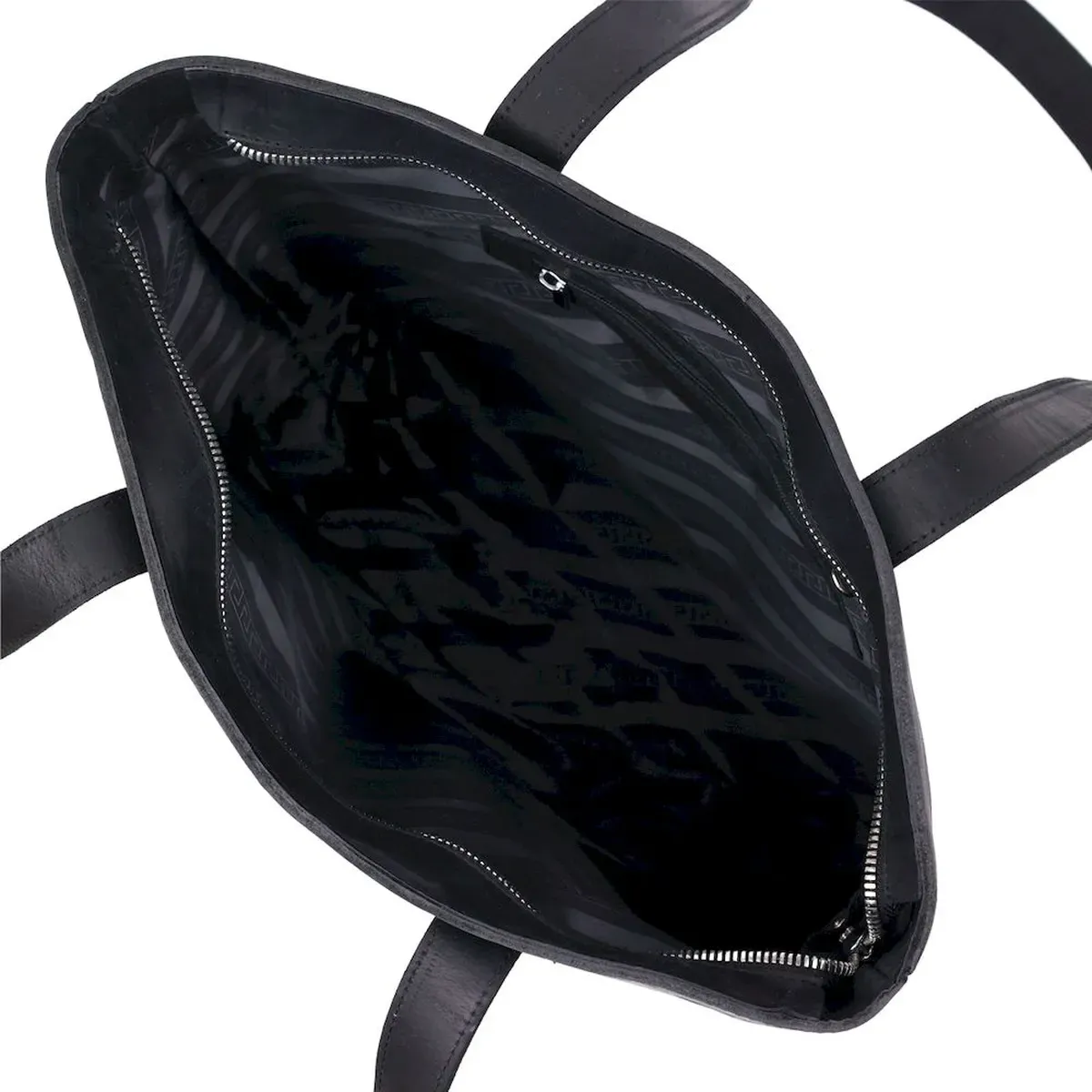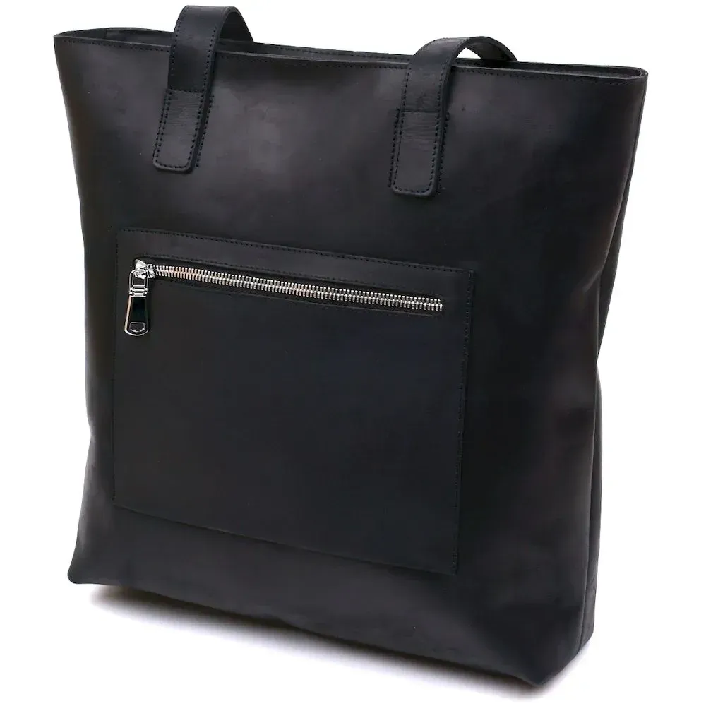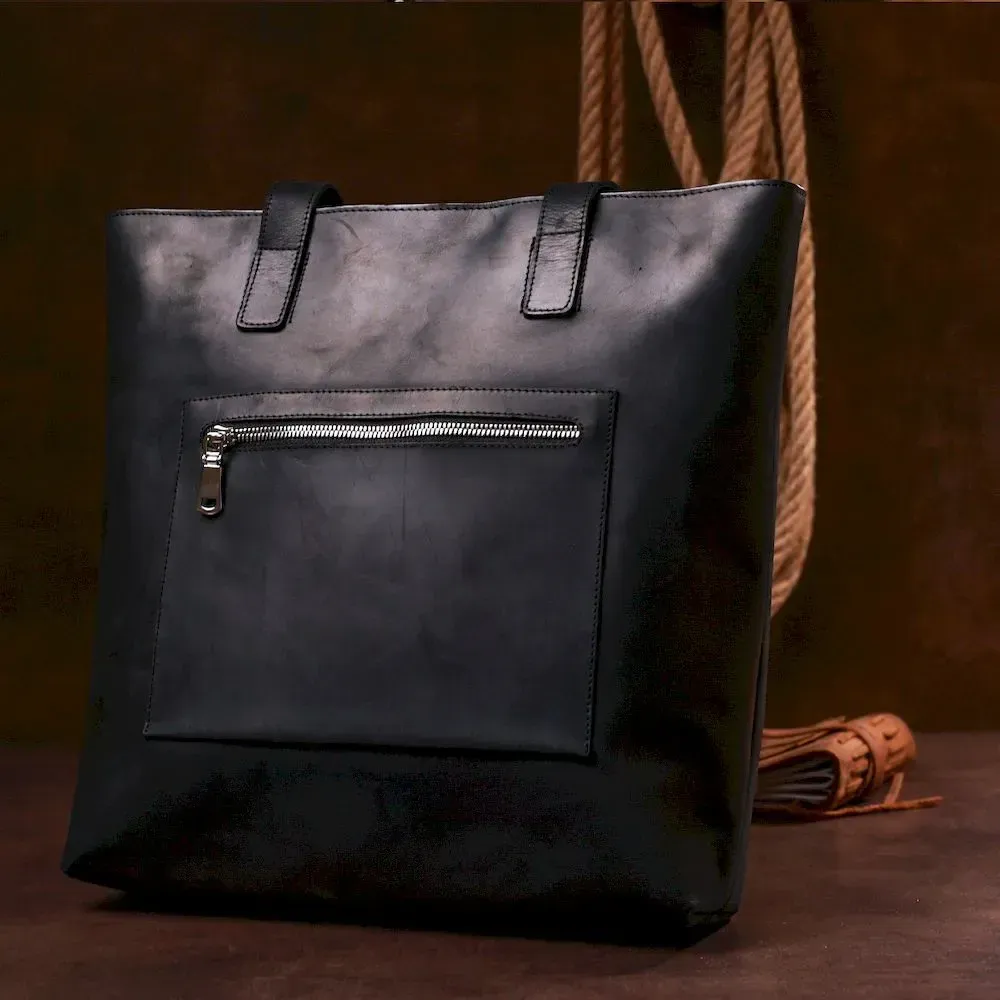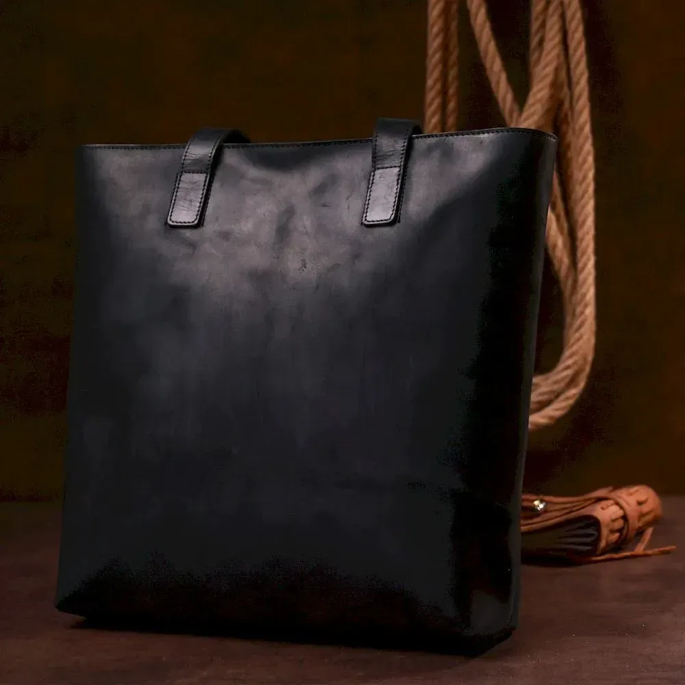 Відмінна містка жіноча сумка для тих, хто віддає перевагу строгому та лаконічному дизайну без надмірностей. Колір моделі – універсальний чорний, а значить, вона підійде під будь-який стиль одягу, фактура – матова вінтажна. Матеріал виконання – натуральна шкіра з високими показниками стійкості до зношування. Для перенесення використовуються дві міцні надійні ручки.