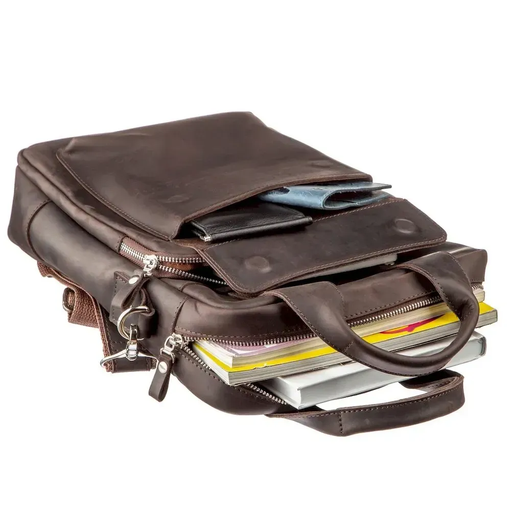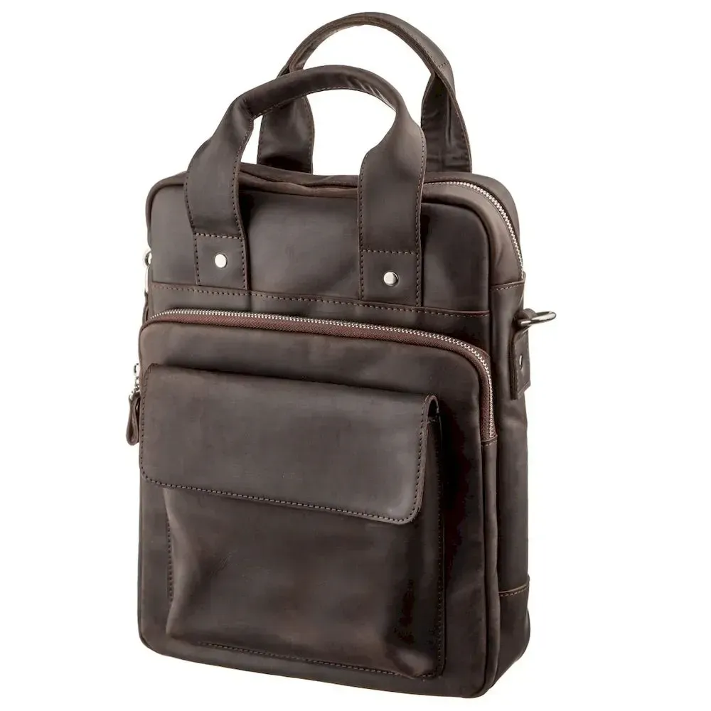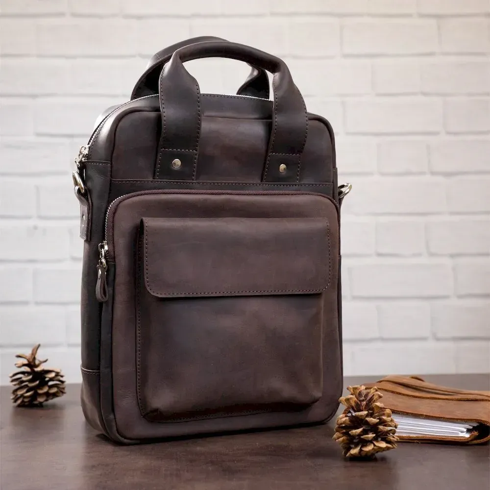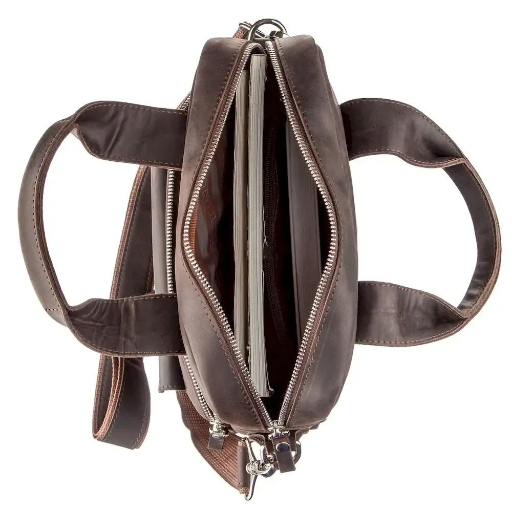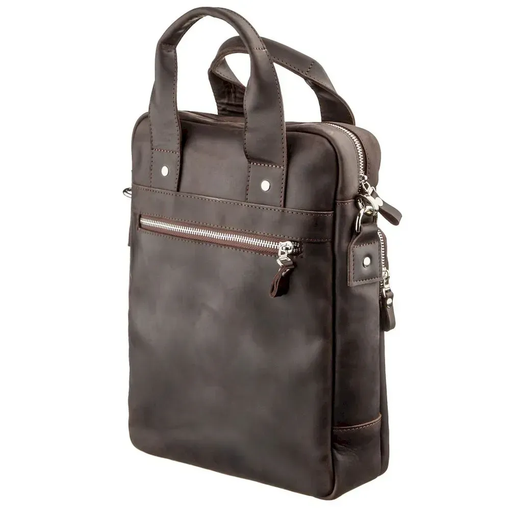 Вінтажна сумка під А4 вертикального формату в матовій шкірі 11166 SHVIGEL, Коричнева