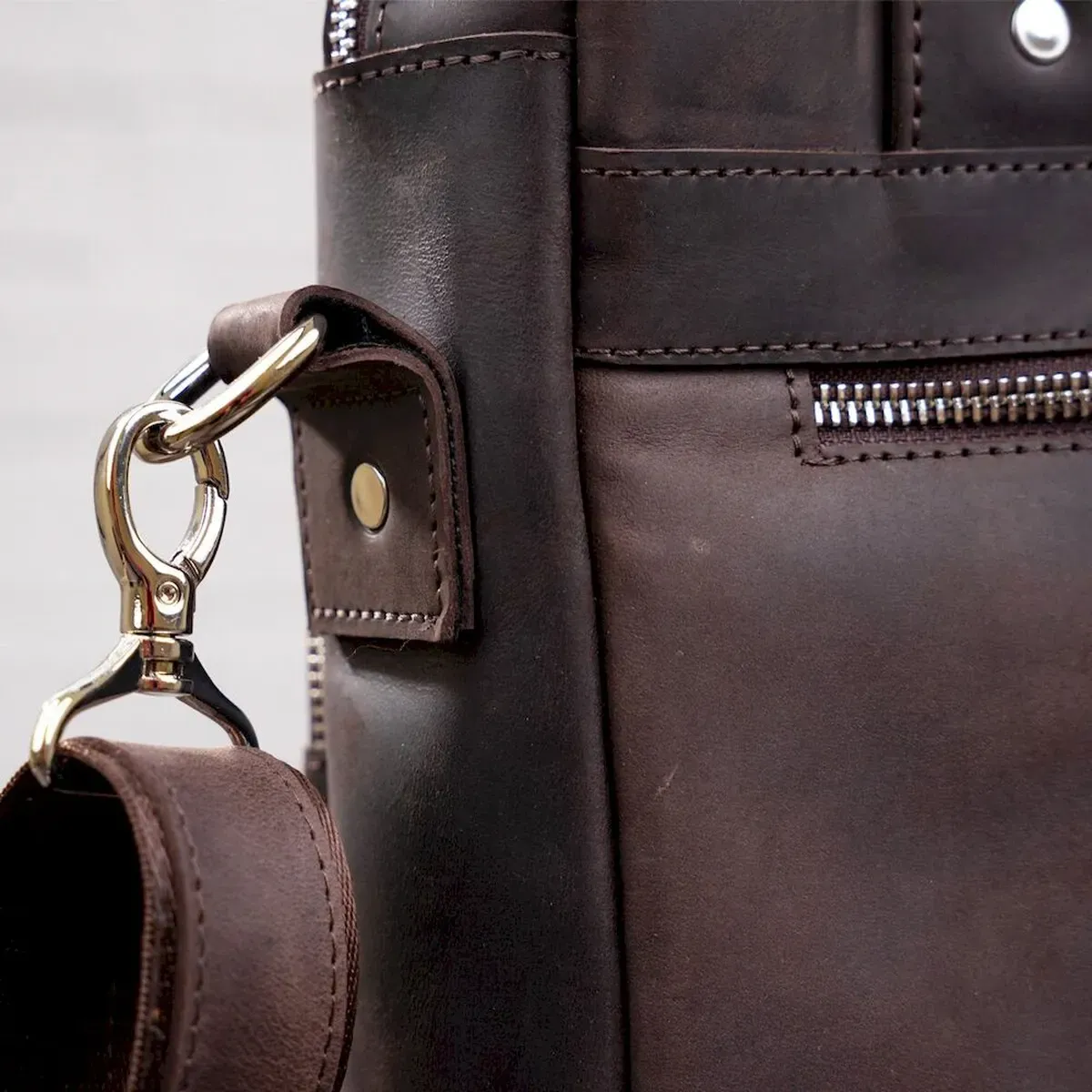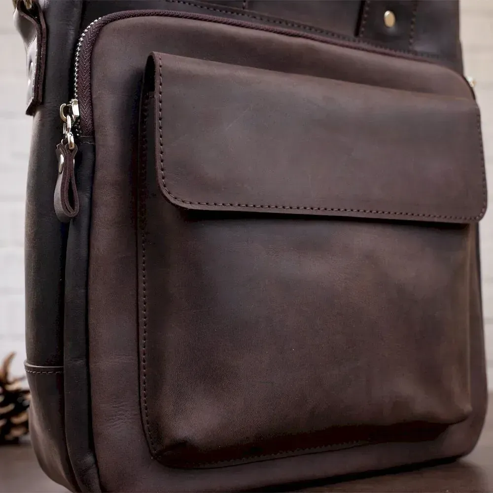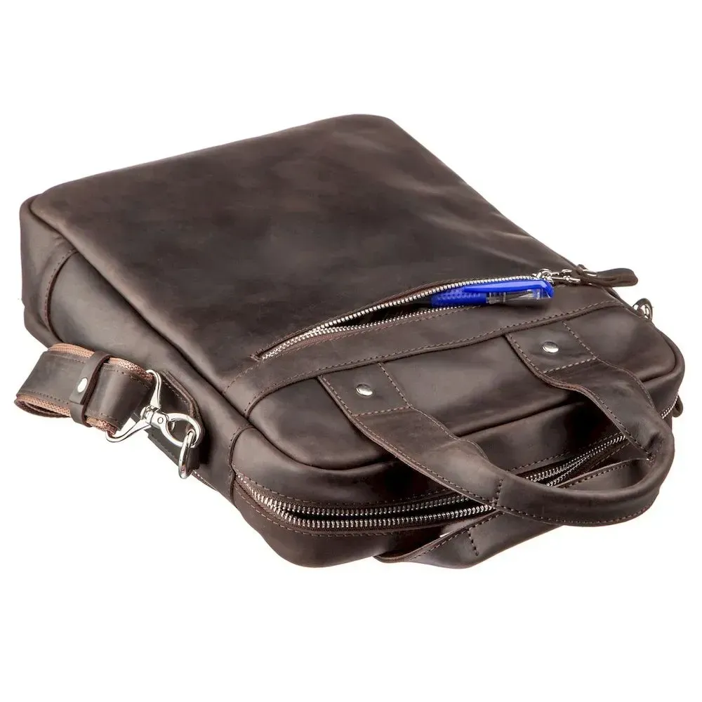 Сумка виконана з натуральної шкіри Crazy horse, яка вже давно запала в душі багатьом клієнтам. Особливістю шкіри такого плану є те, що вона виглядає у вінтажному стилі та її зовнішній вигляд згодом стає ще яскравішим. Віддаючи перевагу сумці з натуральної шкіри, ви повинні пам'ятати, що вона прослужить вам набагато більше ніж замінник. Ви можете трохи переплатити і при цьому проносити її на кілька років довше. Внизу – металеві ніжки. Виробники продумали все до дрібниць для вашого комфорту. З такою сумкою ви виглядатимете дуже солідно та стильно. Аксесуар доповнений сріблястою фурнітурою, яка ідеально підходить під дизайн виробу. Ми впевнені, що сумка в подарунок – чудовий варіант. Від такої сумки просто неможливо відмовитись. Побачивши її вперше, ви просто не захочете з нею розлучатися.