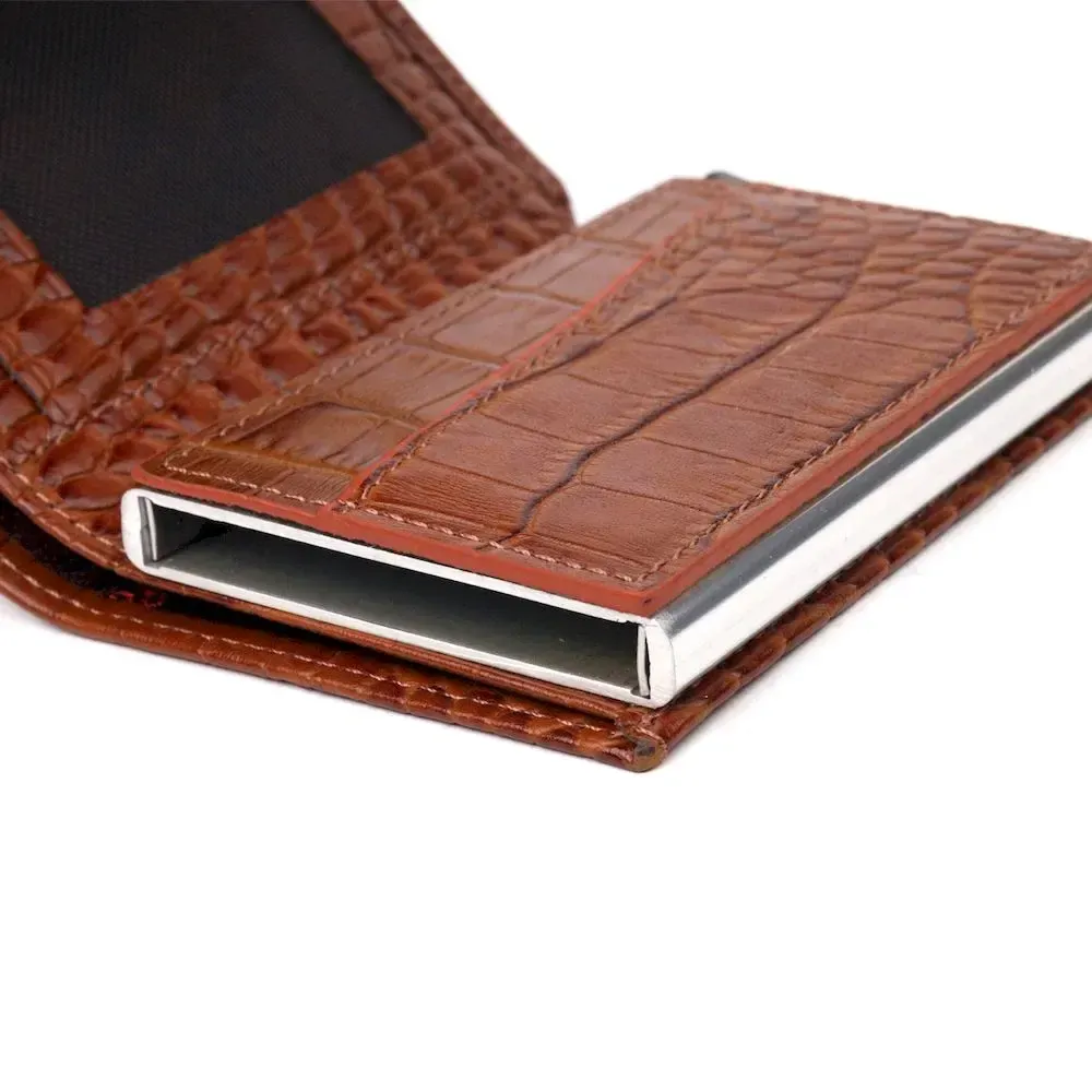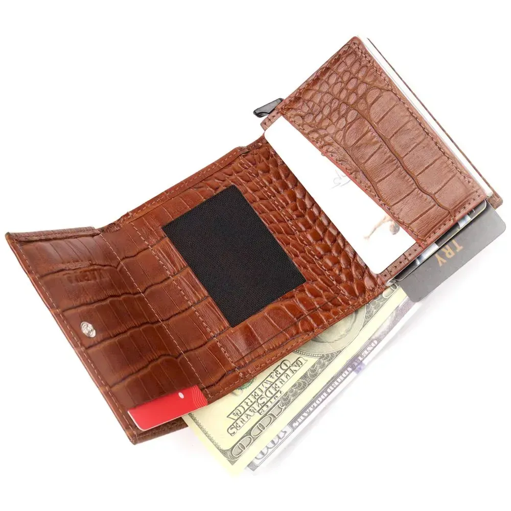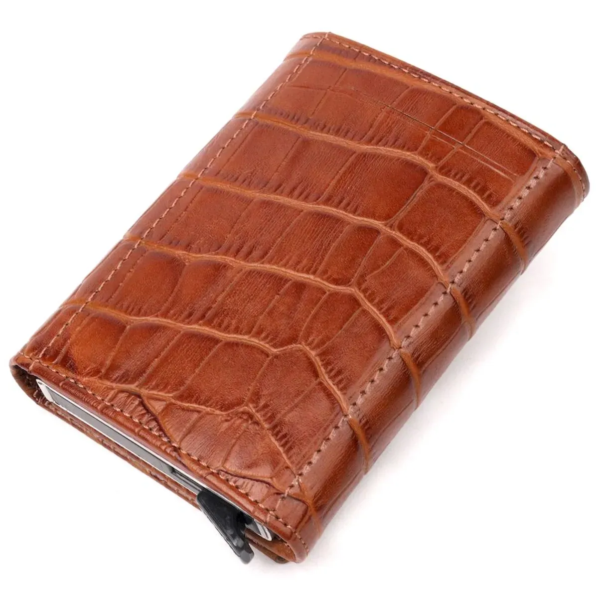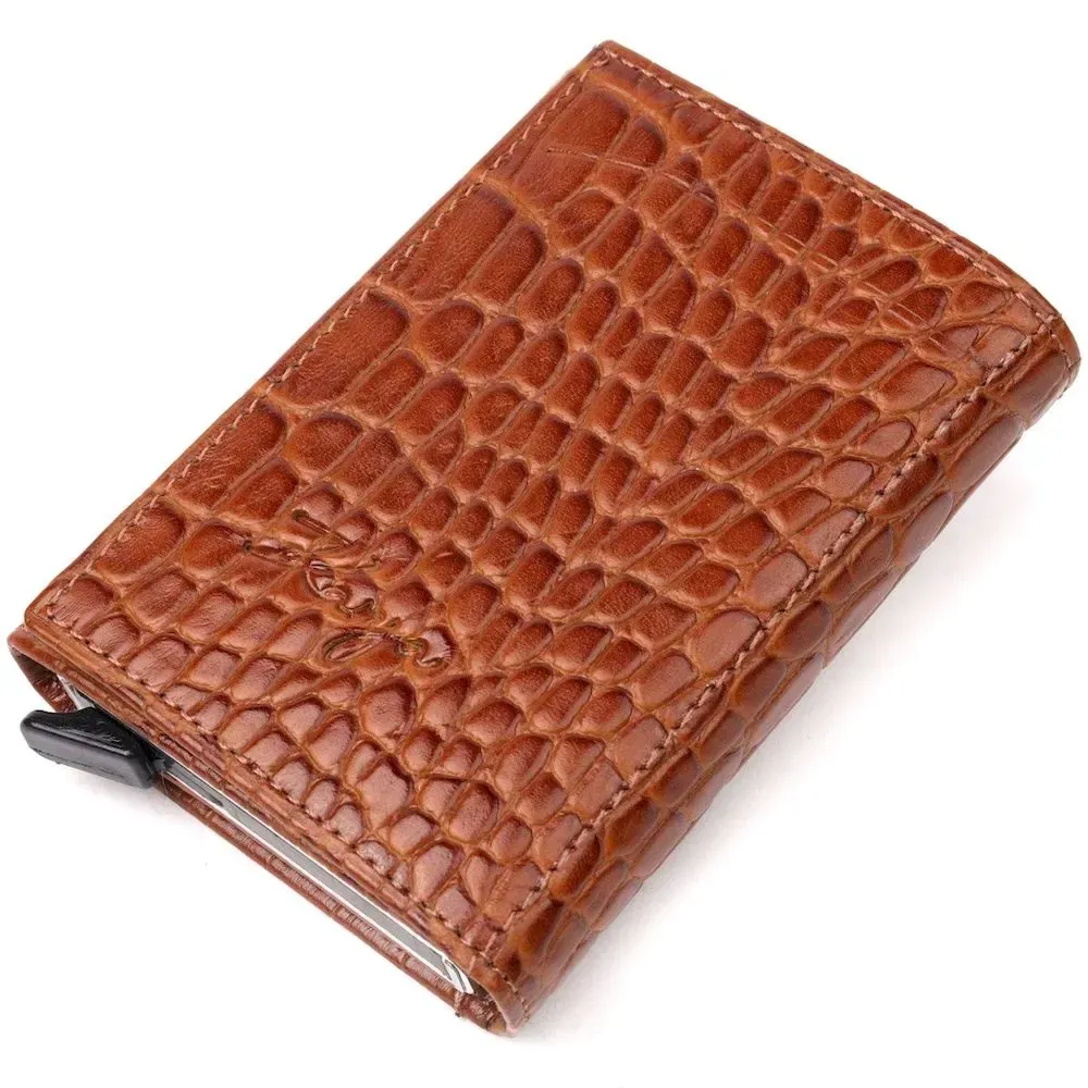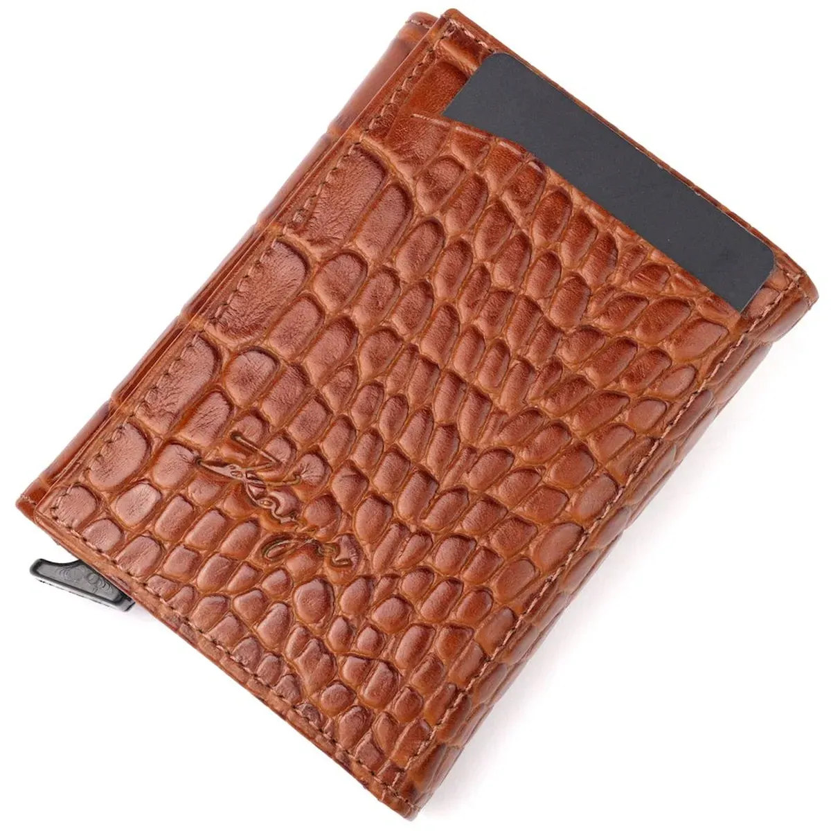 Візитниця з натуральної фактурної шкіри під крокодила KARYA 20986 Коричневий