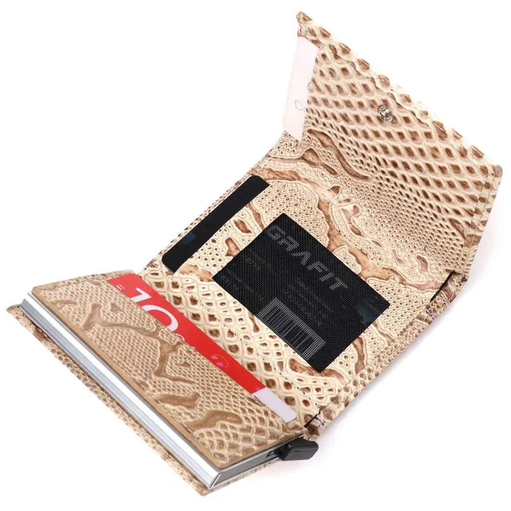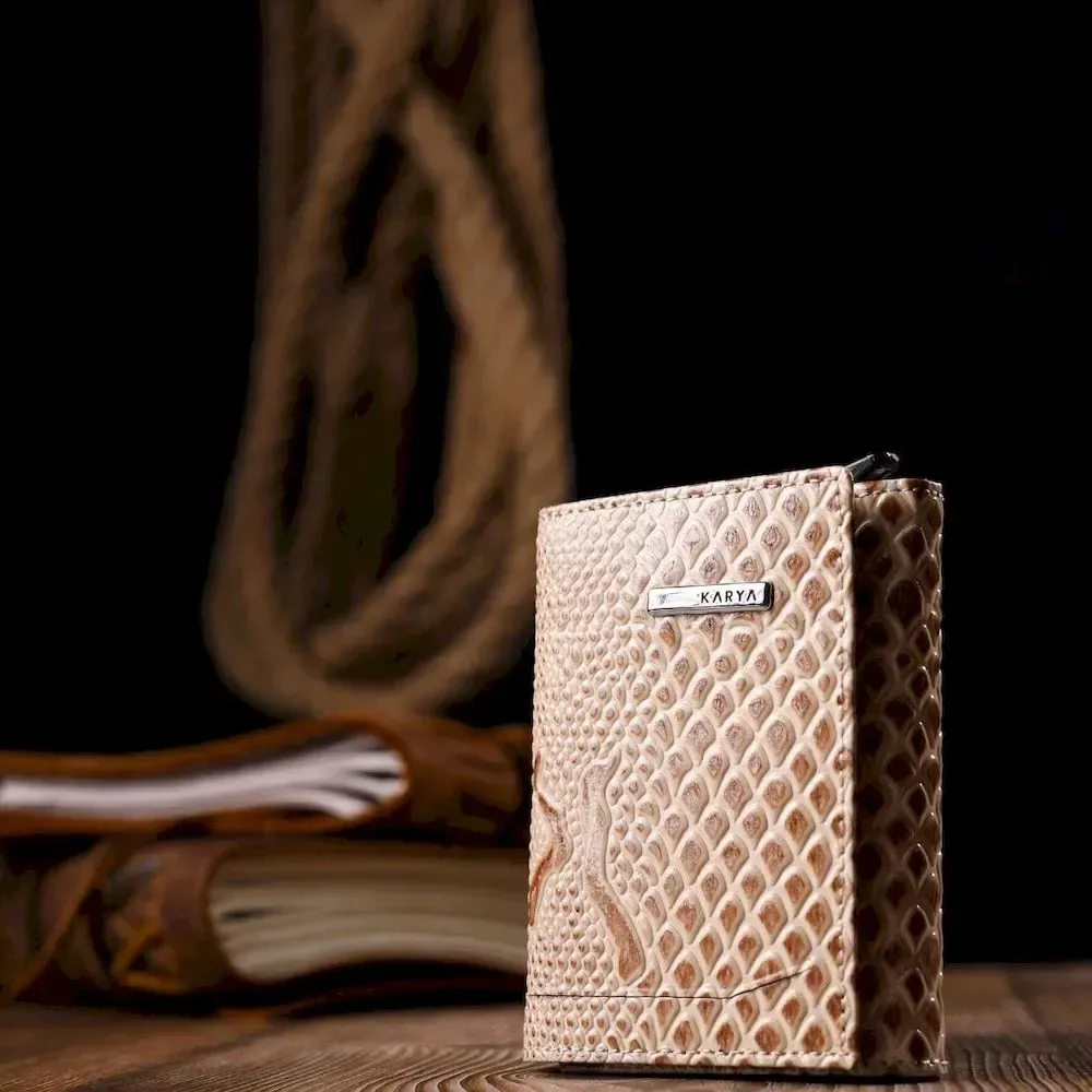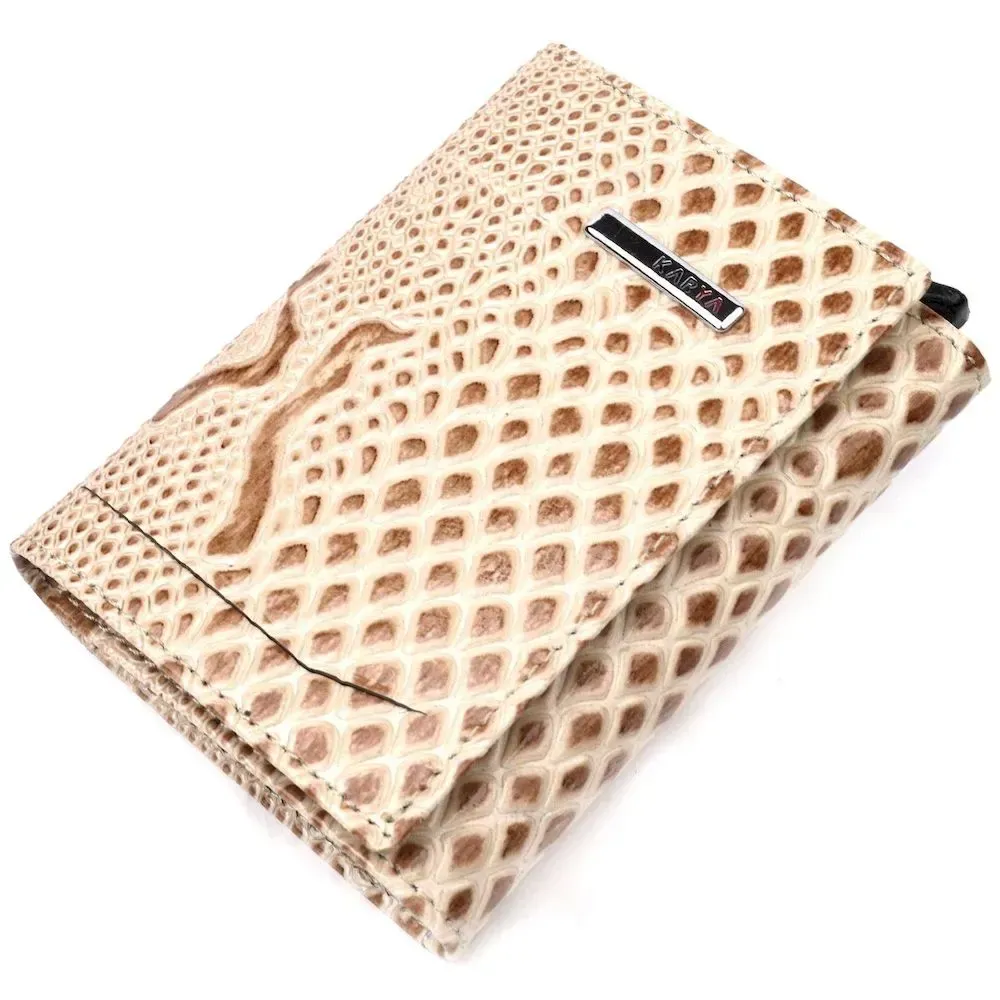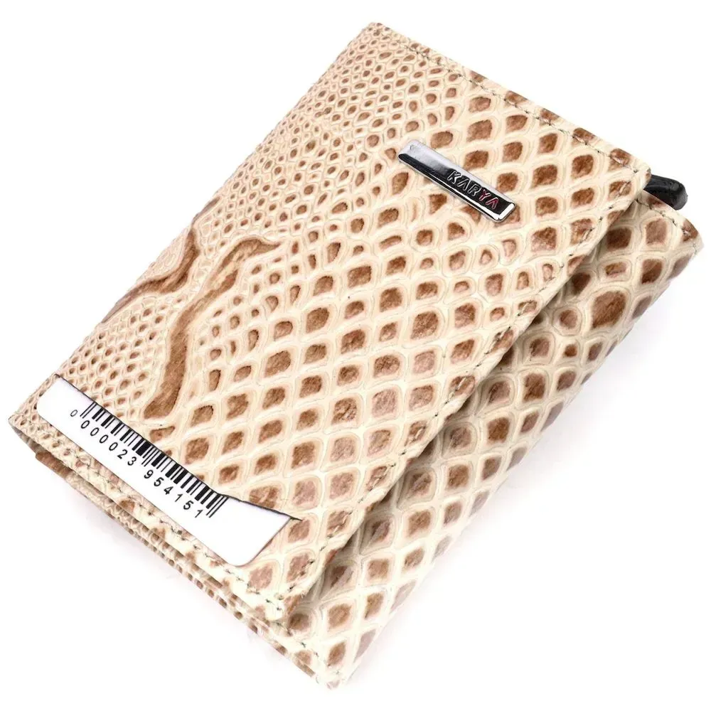 Візитниця із натуральної фактурної шкіри під змію KARYA 20985 Бежевий
