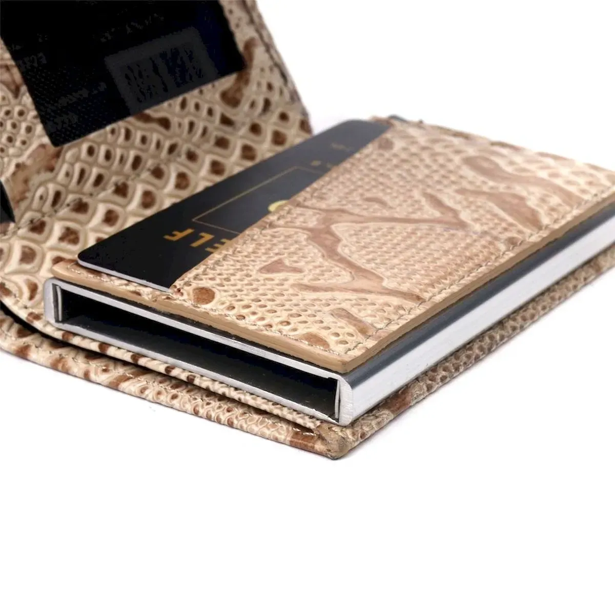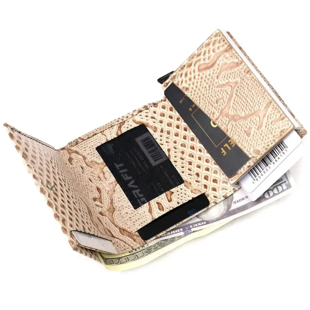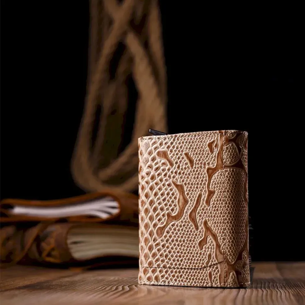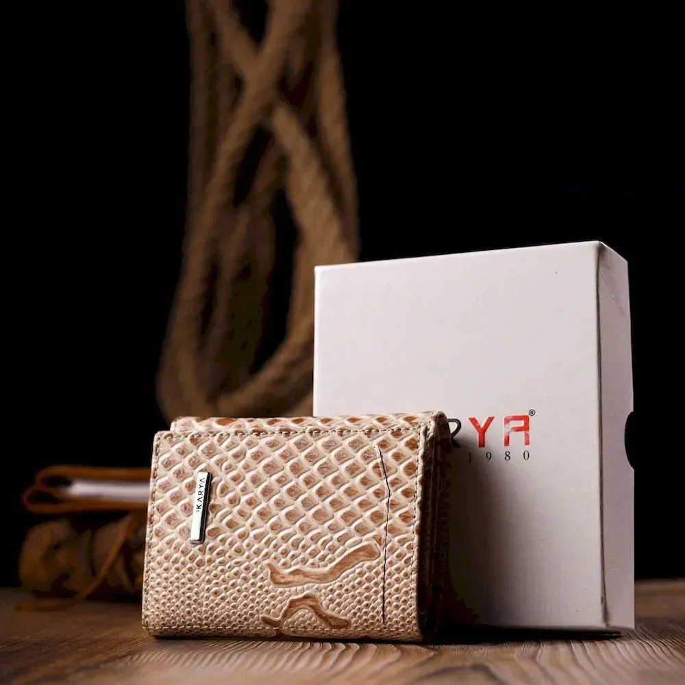 Візитниця із натуральної фактурної шкіри під змію KARYA 20985 Бежевий