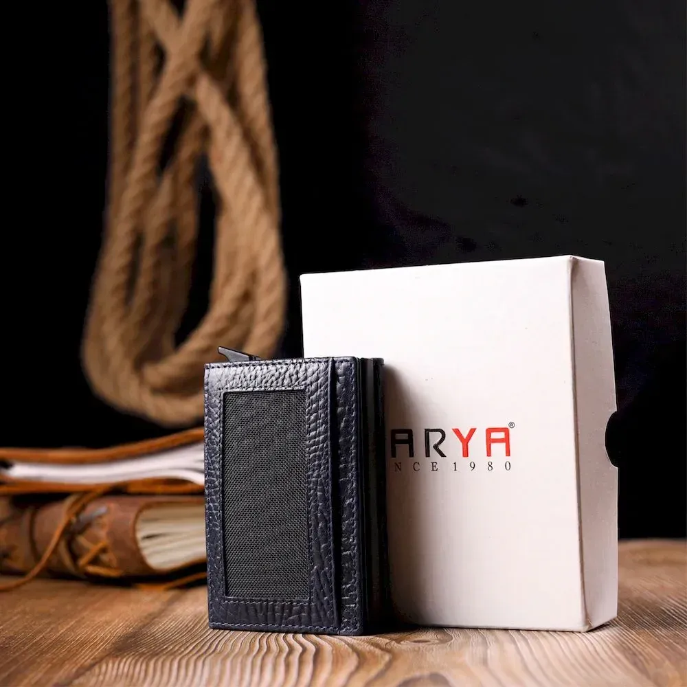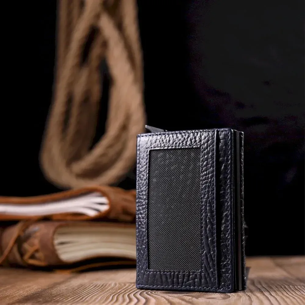 Практичний картхолдер з натуральної шкіри, призначений для зберігання банківських і дисконтних карток і невеликої кількості готівки. Має лаконічний дизайн, відмінно лягає в руку, поміщається в кишеню, а також будь-яку сумку. Шкіра м'яка, приємна на дотик. Механізм працює надійно та зручний у використанні; картки добре закріплені в аксесуарі. Відмінна ідея для подарунка близькій людині.