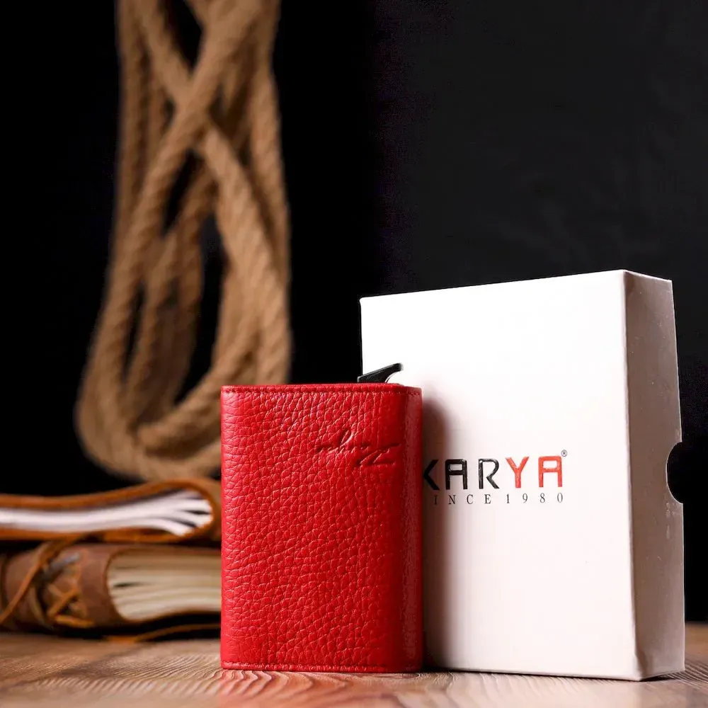 Візитниця з натуральної зернистої шкіри KARYA 20981 Червоний