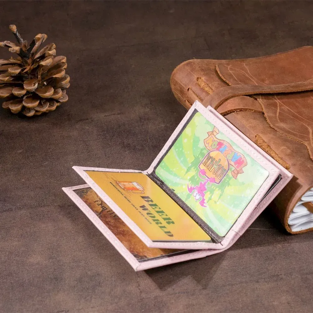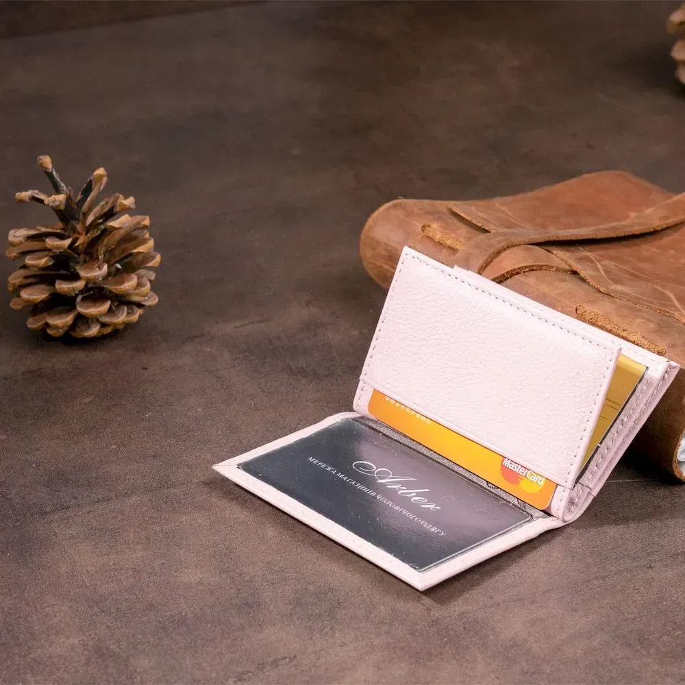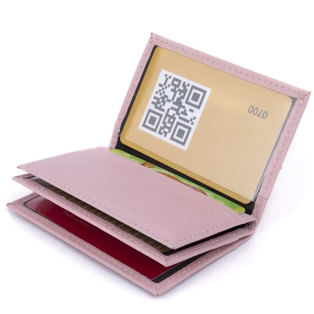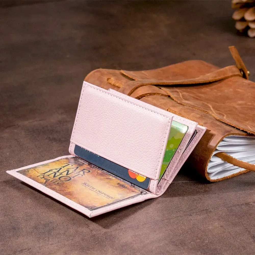 Новинка. Маленька візитниця з натуральної шкіри у стильному рожевому кольорі. Аксесуар має достатньо слотів для кредиток. Виглядає візитниця у вигляді книжечки. Модель має 6 осередків усередині та 2 осередки зовні для кредиток. З таким аксесуаром ваші картки завжди будуть в одному місці. У комплекті йде фірмове впакування. Візитниця стане чудовим подарунком для ваших близьких.