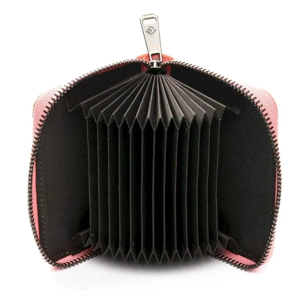 Жіноча візитниця, виготовлена з натуральної шкіри. Закривається на блискавку. Усередині знаходяться 14 відділень для візитних карток. Розмір (см.) 10,5*8*2,5