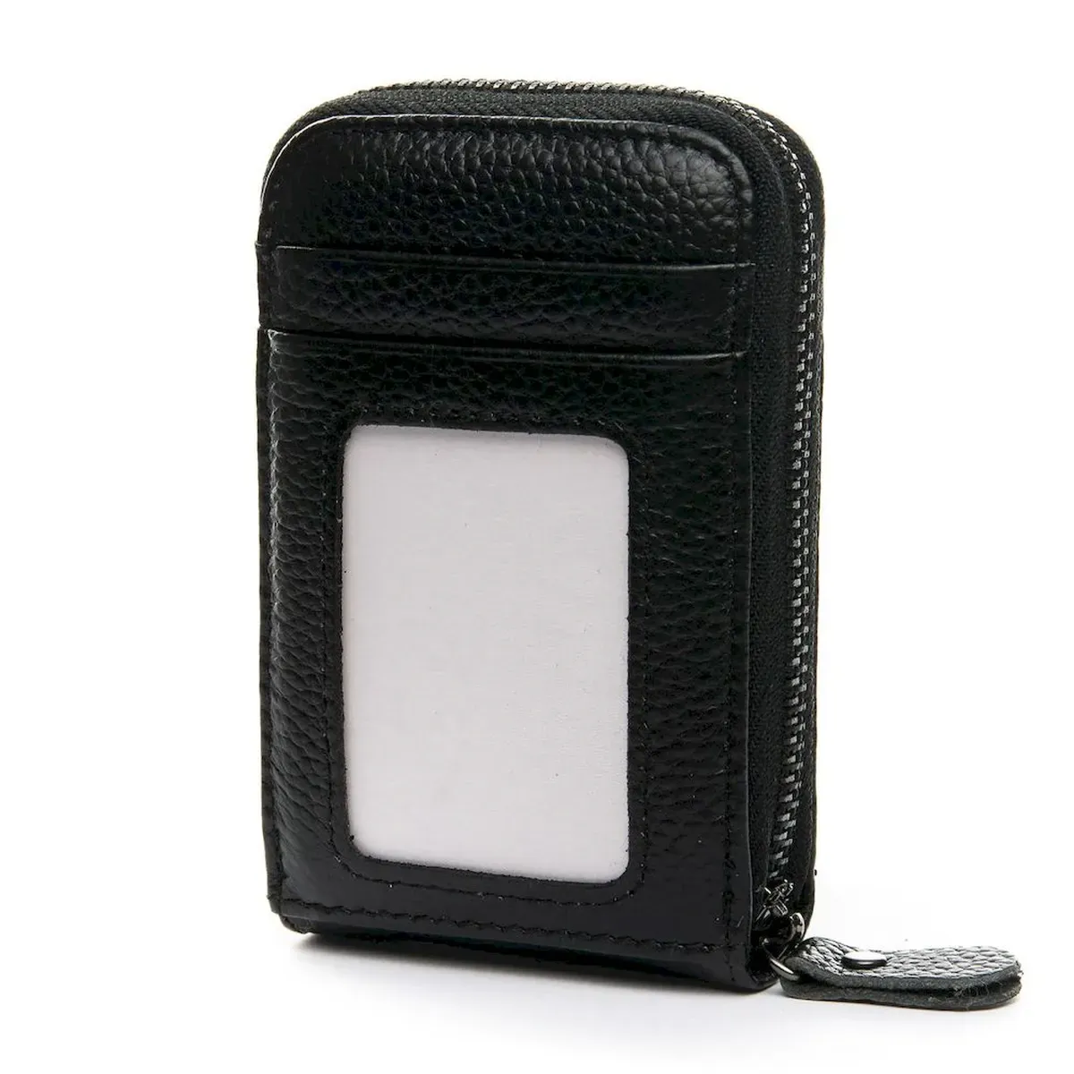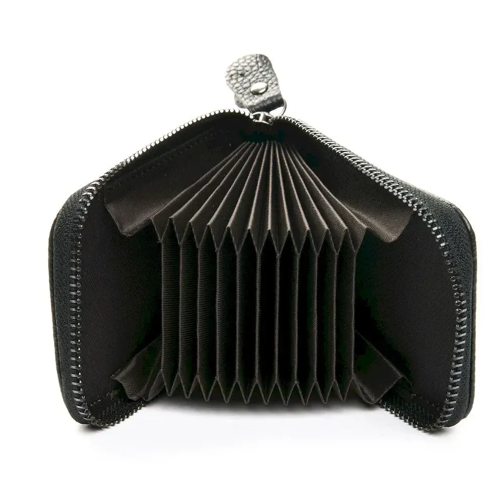 Жіноча візитниця, виготовлена з натуральної шкіри. Закривається на блискавку. Усередині є 12 відділень для візитних карток. Зовні візитниці є дві відкриті кишені, одна з яких виконана прозорою. Розмір (см.) 11,5*7,5*3