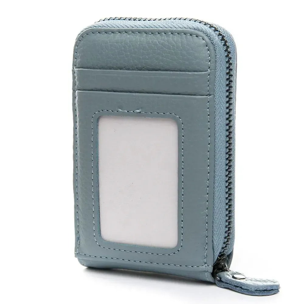 Жіноча візитниця, виготовлена з натуральної шкіри. Закривається на блискавку. Усередині є 12 відділень для візитних карток. Зовні візитниці є дві відкриті кишені, одна з яких виконана прозорою. Розмір (см.) 11,5*7,5*3