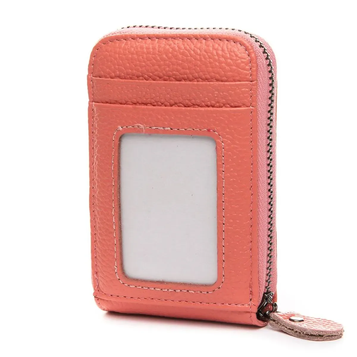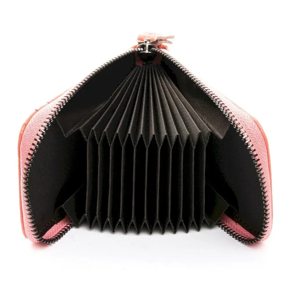 Жіноча візитниця, виготовлена з натуральної шкіри. Закривається на блискавку. Усередині є 12 відділень для візитних карток. Зовні візитниці є дві відкриті кишені, одна з яких виконана прозорою. Розмір (см.) 11,5*7,5*3